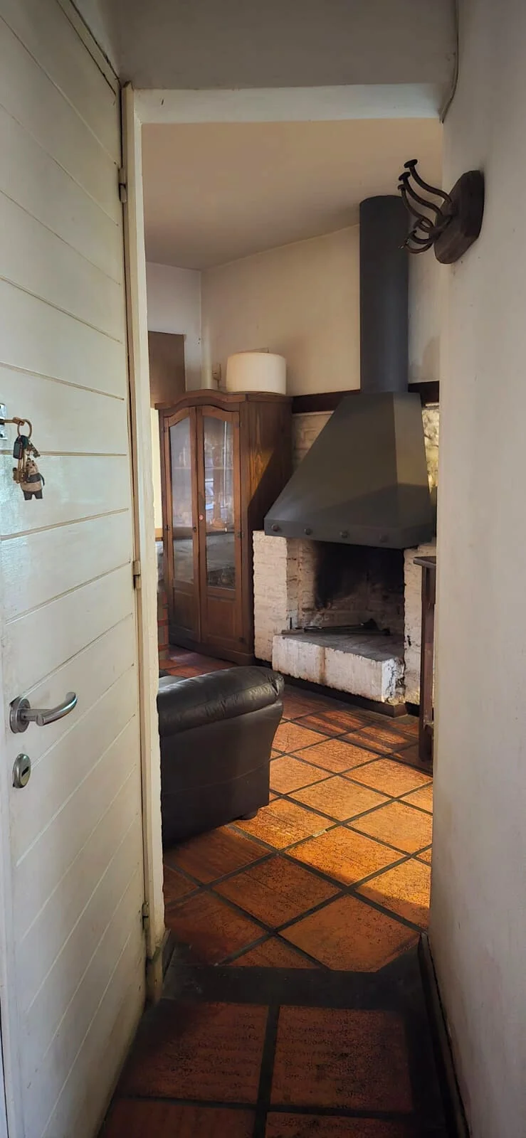 Al frente Living con estufa a leña, comedor con salida a patio.