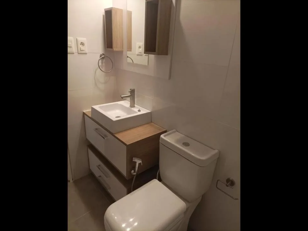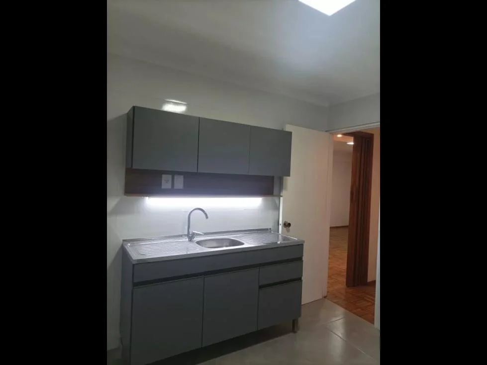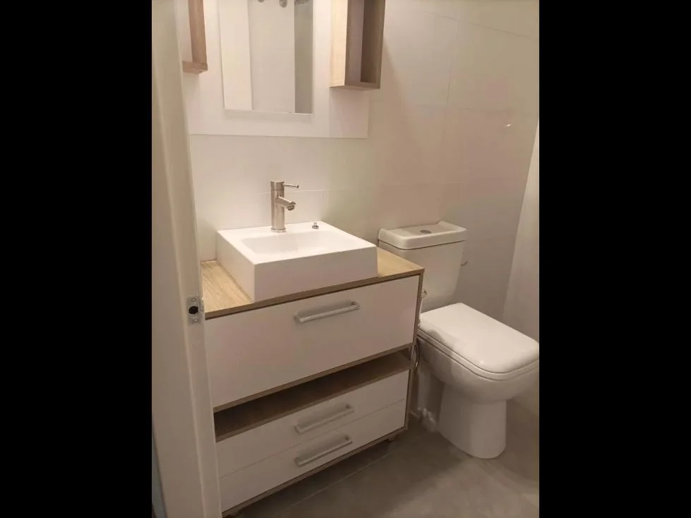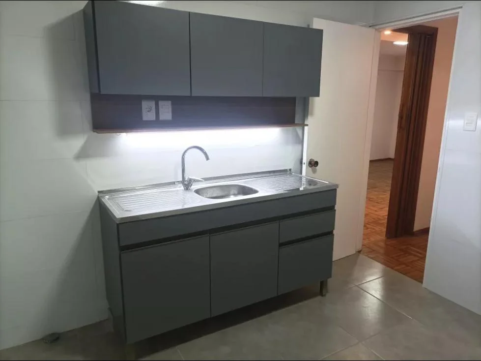 Baño y cocina hechos a nuevo con mobiliario y conexión para lavarropas.