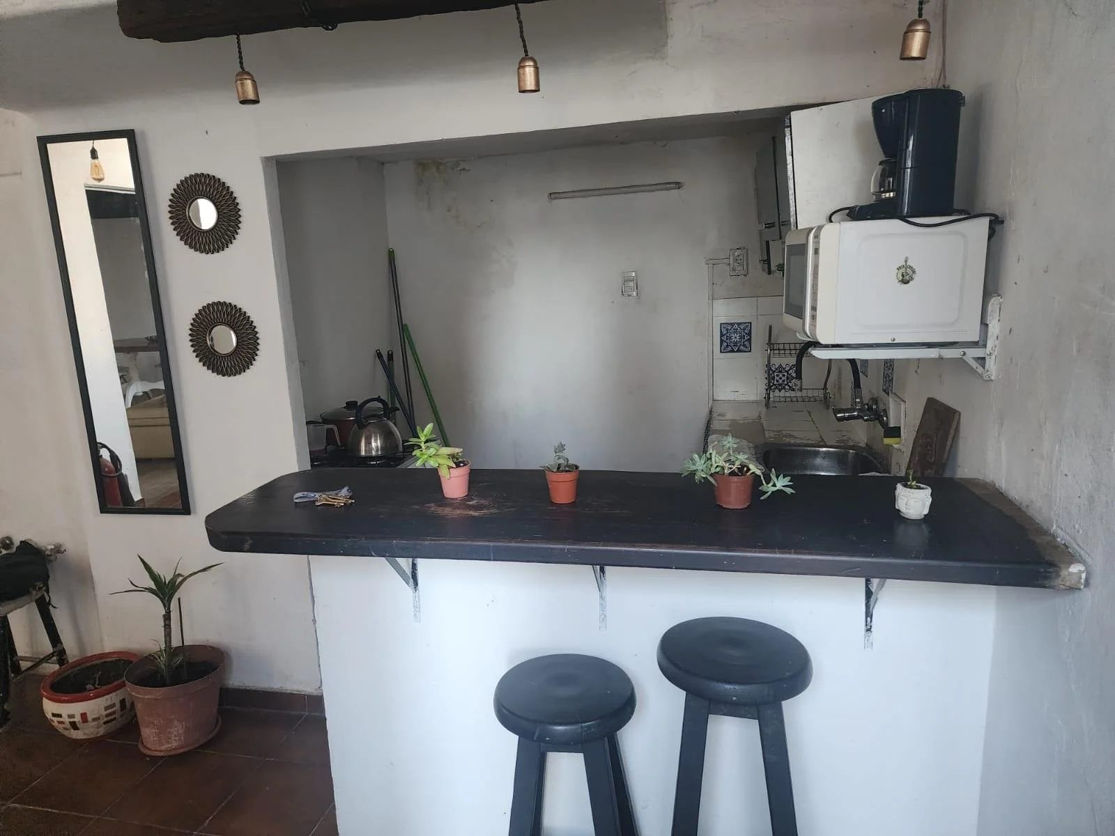 Cocina semi definida con barra.