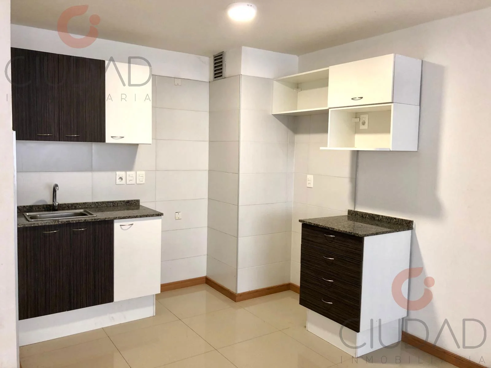 Cuenta con pisos de porcelanato, kitchenette funcional con mesada de granito, muebles aéreos y bajo mesada, grifería monocomando y extractor de aire.
