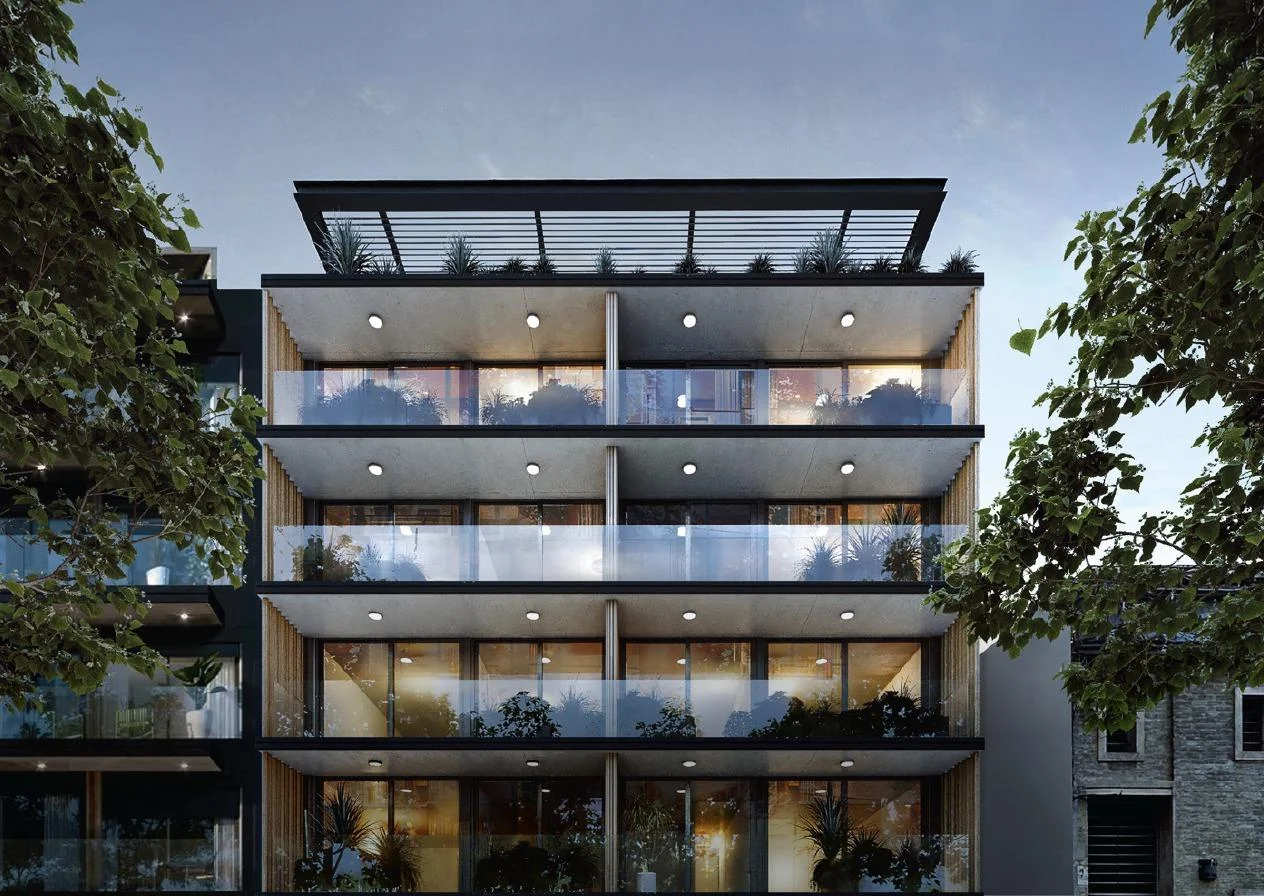 Las unidades de 1 y 2 dormitorios se destacan por su fachada vidriada y amplios balcones, que permiten una conexión fluida entre el interior de los apartamentos y el entorno exterior