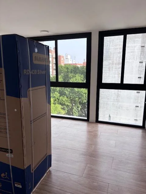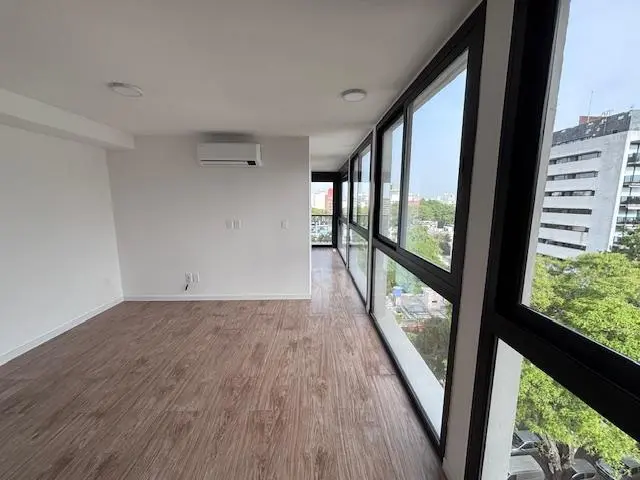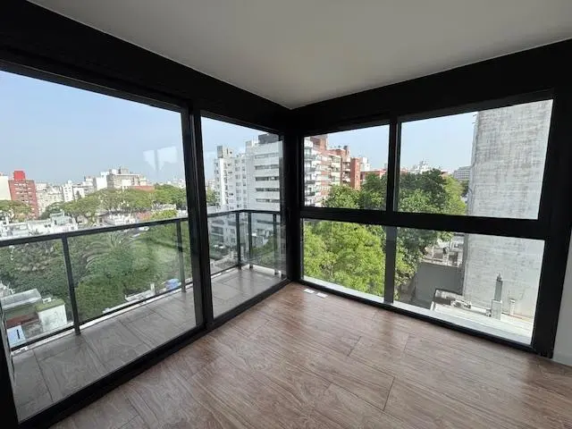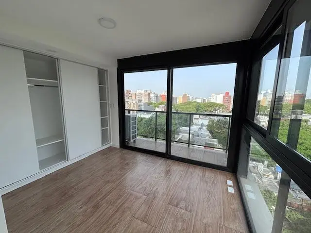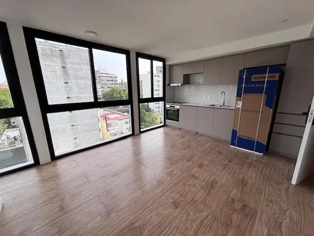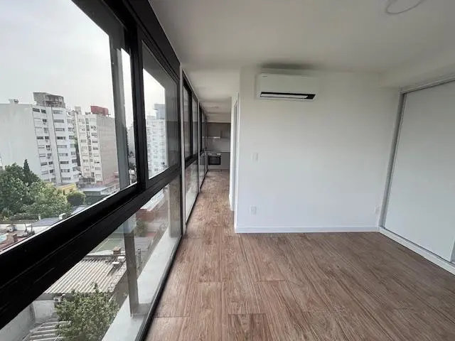 Cocina integrada al living comedor, todo vidriado, 1 baño, y 1 dormitorio con placares con salida a una terraza.