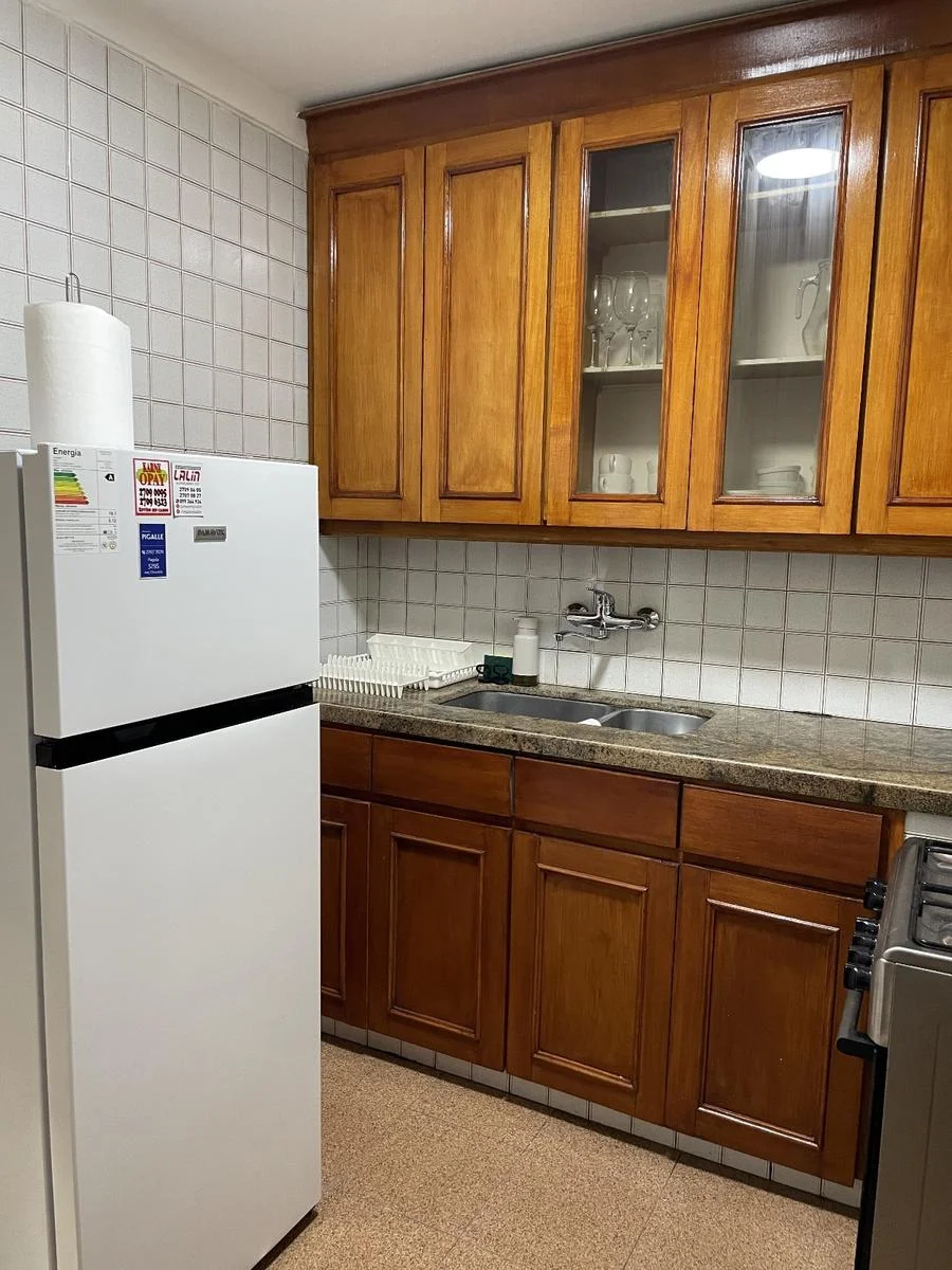 Living comedor con salida a terraza al frente, dormitorio con placard, baño completo, cocina con placares aéreos, bajo mesada y terraza lavadero.