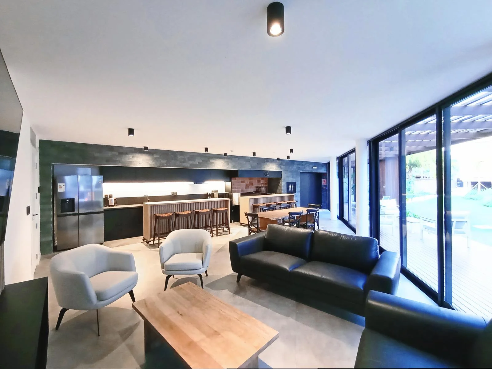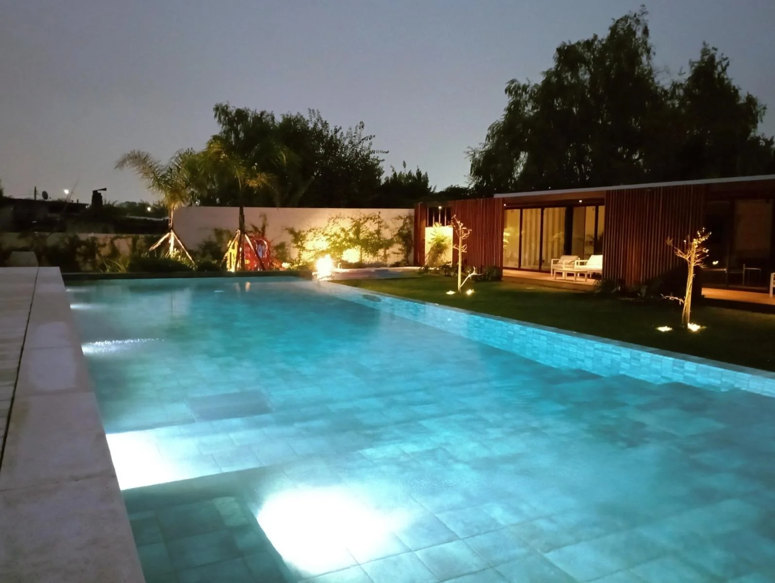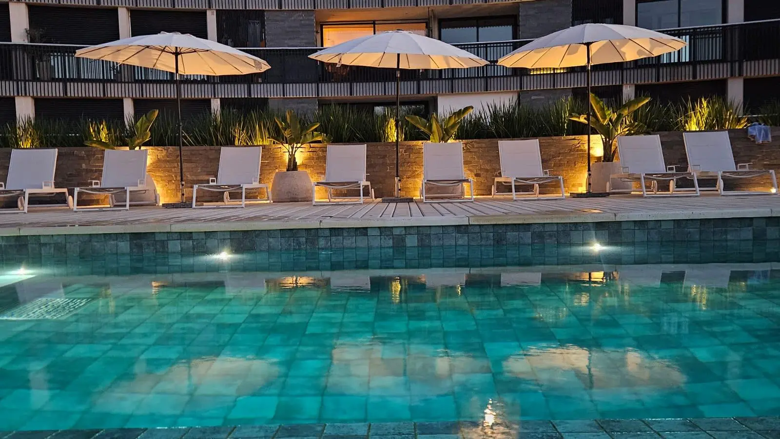 - Piscina de diseño con borde infinito, climatizada con agua salada y amplio solarium con deck atérmico