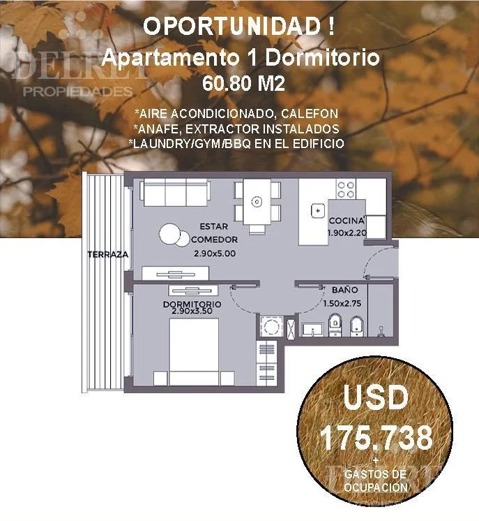 HERMOSO APARTAMENTO de 1 dormitorio con terraza.
