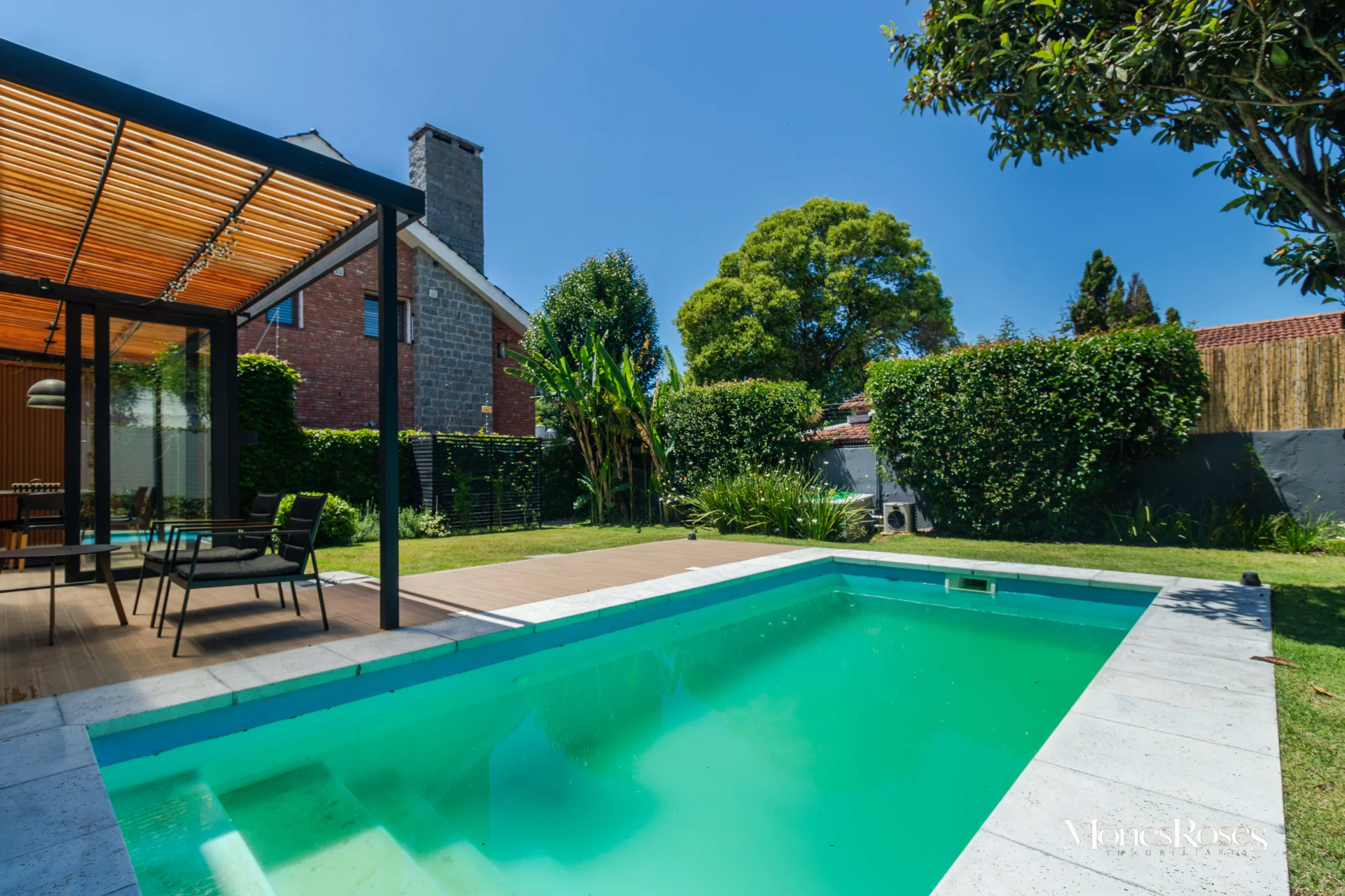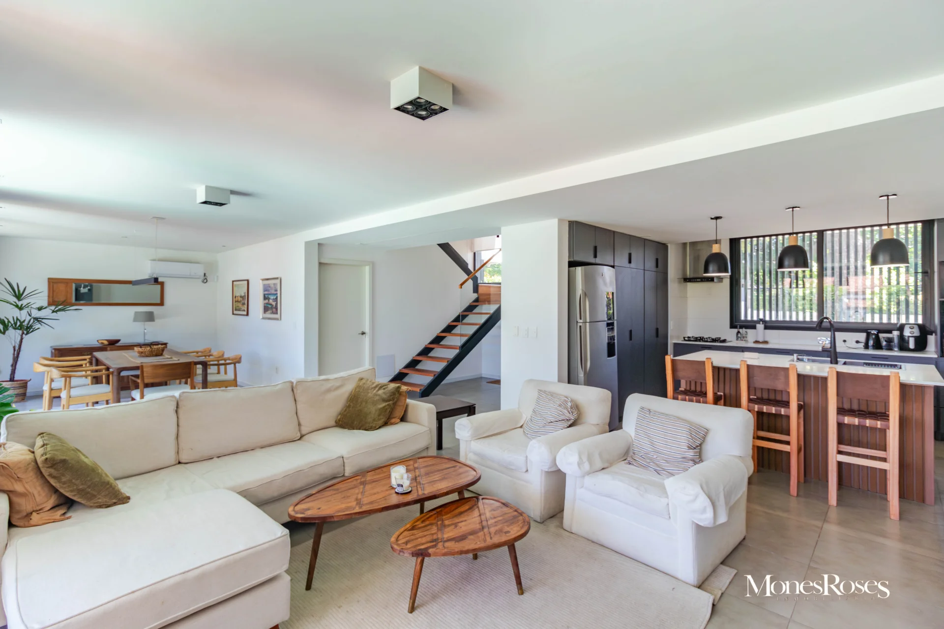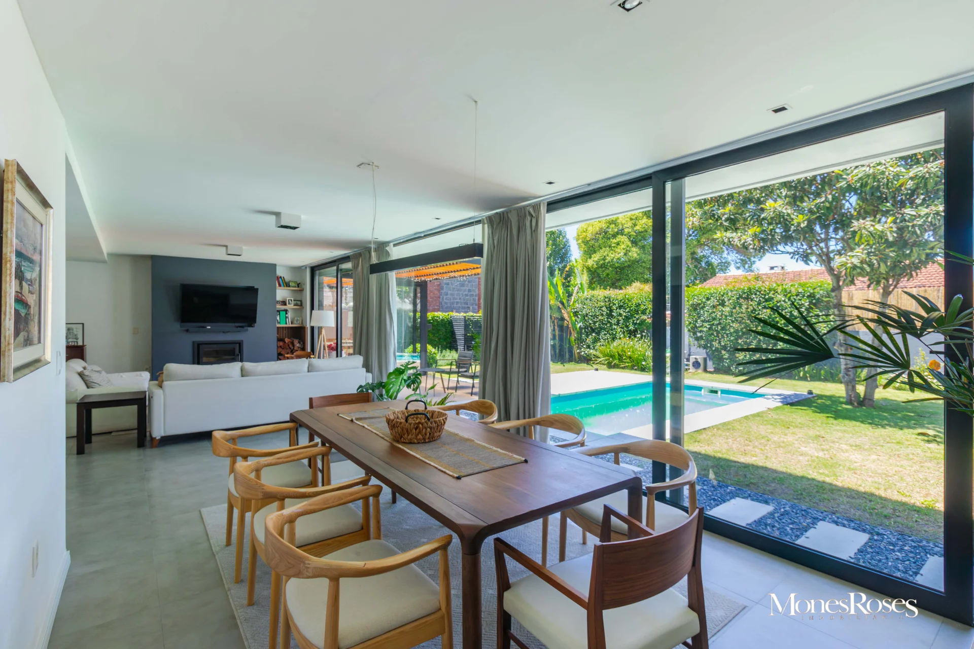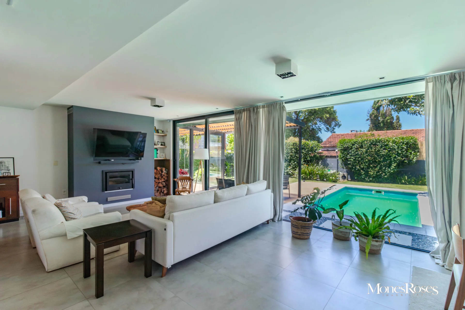 Casa moderna, minimalista en Carrasco Sur, 2 plantas. Living comedor con estufa a leña alto rendimiento, ambiente amplio, pisos porcelanatos, y todo con salida al fondo. Cocina divina, integrada a la recepción. Toilette. 4 dormitorios. En p.b.: 1 dormitorio (o escritorio) y 1 baño completo. En p.a.: 3 Dormitorios, 2 baños, suite, vestidor. Calefacción central por losa, y agua caliente por caldera a gas. Aires acondicionados. Gran fondo verde, con piscina climatizada y deck y parrillero techado, muy linda área social exterior, para disfrutar del fondo. Pasaje lateral. Garage. Alarma, seguridad. Todo impecable y nuevo. INMOBILIARIA MONES ROSES *** - ***VISITE NUESTRA WEB MONESROSES.COM POR MAS FOTOS Y PROPIEDADES