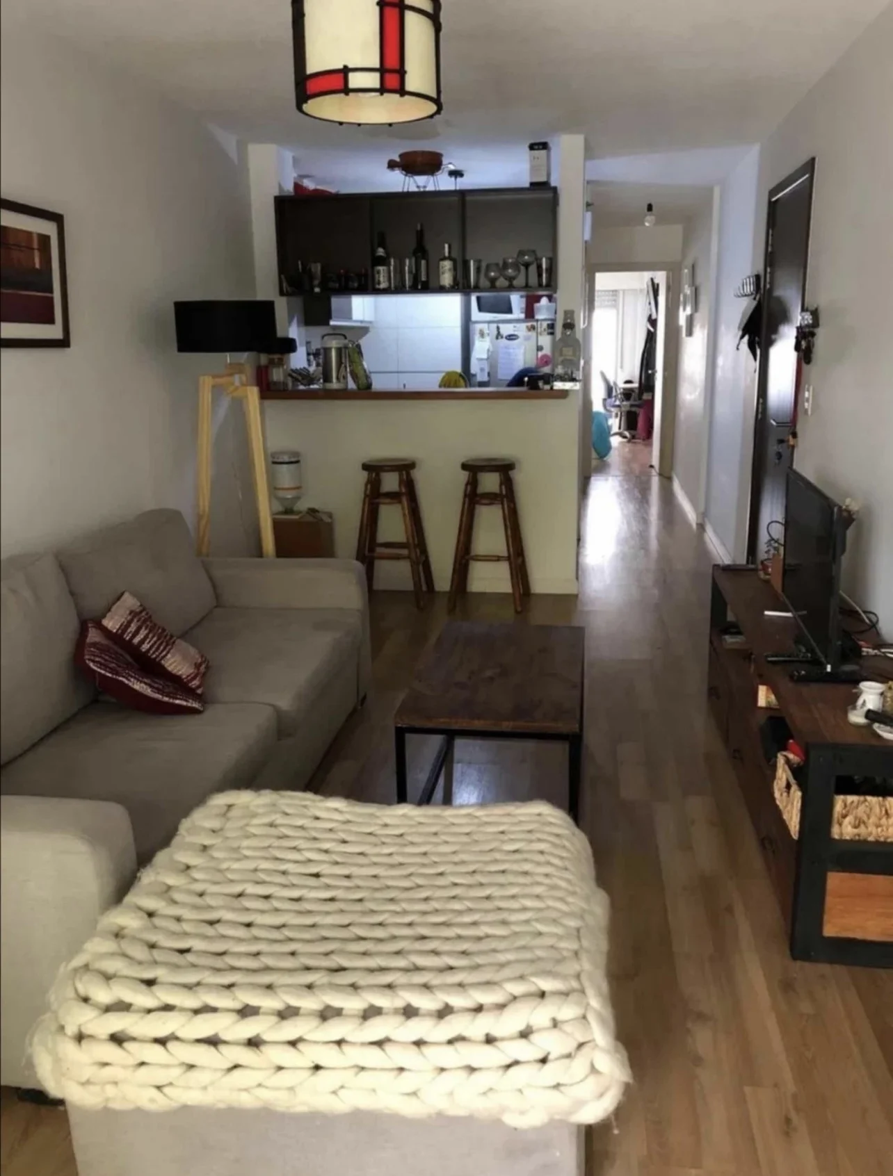 Apartamento de 1 dormitorio y 1 baño, ubicado en primer piso con ascensor. Cuenta con cocina integrada, balcón y patio.