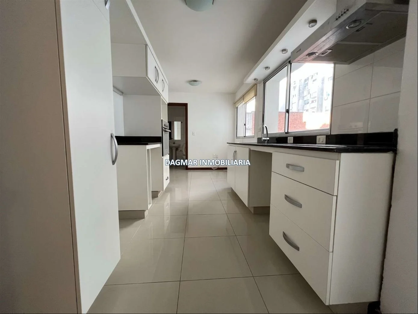 Disponible a partir de abril. Hermoso apartamento moderno y soleado sobre 21 de setiembre a dos cuadras de la Rambla. Vista lateral al mar. Living comedor con balcon al frente, suite con amplios placares y bañera, 2 dormitorios con un baño hacia atras, cocina con horno, anafe y campana instalados. La habitacion de servicio se abrio para agrandar el estar en la cocina. Balcon hacia atras. Se entrega con calefones y luminarias (artefactos de luz) instalados. Calefaccion electrica de losa por sectores. Muy comodo garage para 2 autos. Amenities salon barbacoa para 20 personas y terraza solarium. Vigilancia 24 hs por Foxsys, camaras, porton automatico del garage. Gastos bajos aporx $10.000. Contrato a 2 años. Garantia solo Porto Seguros.