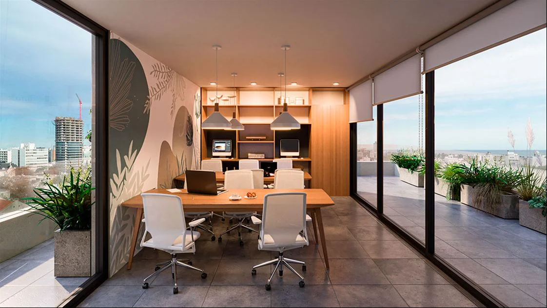 · Cowork con estación de servicios y mesa colectiva de trabajo.