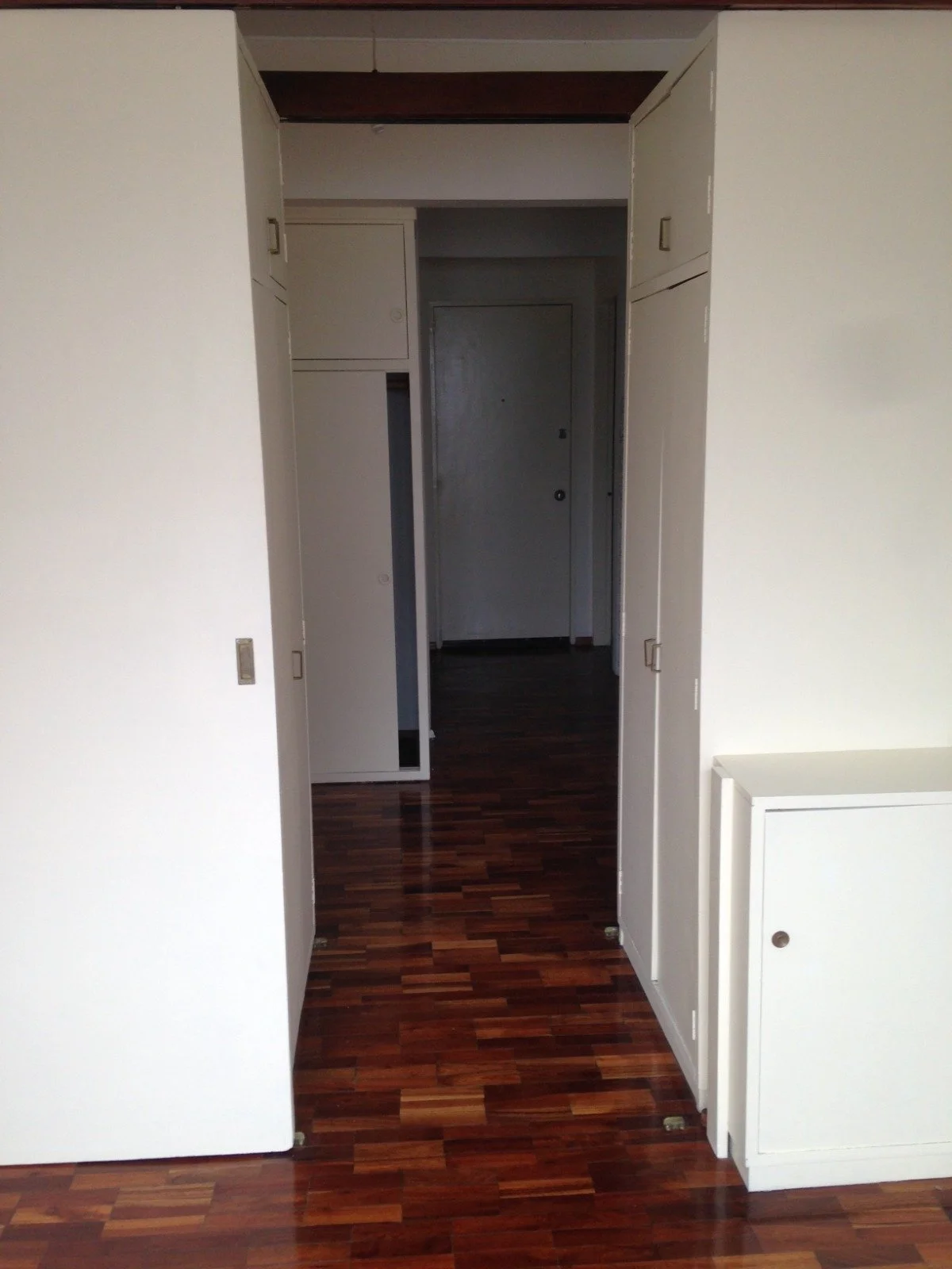 Apartamento muy bien distribuido con placares y puertas corredizas que posibilitan separar dormitorio del living.