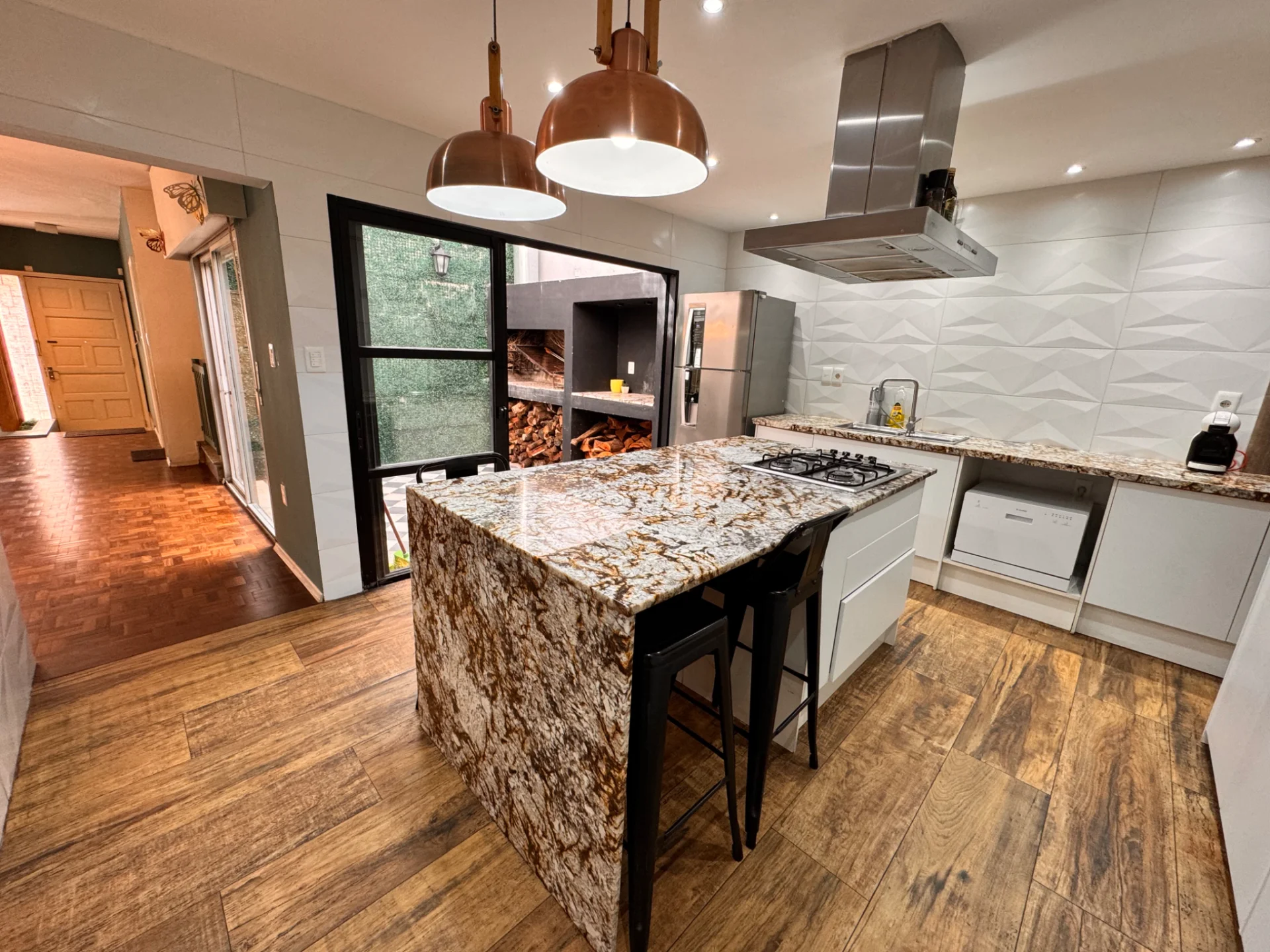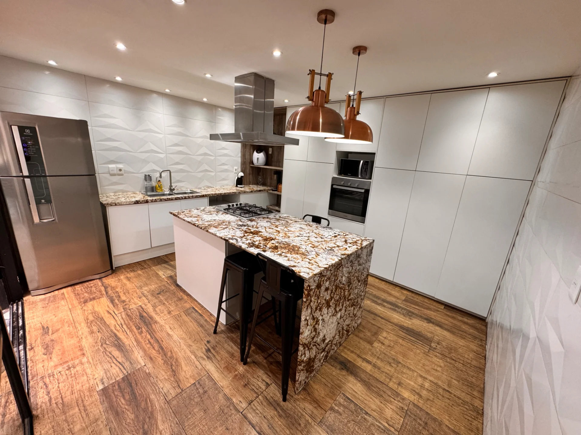 La cocina es amplia, moderna y perfecta para quienes disfrutan cocinar: práctica, cómoda y con diseño impecable. Junto a ella se encuentra un patio interno con parrillero, que brinda gran comodidad para reuniones sociales, integrando cocina, estar y parrillero en una misma área accesible, funcional y súper amplia.