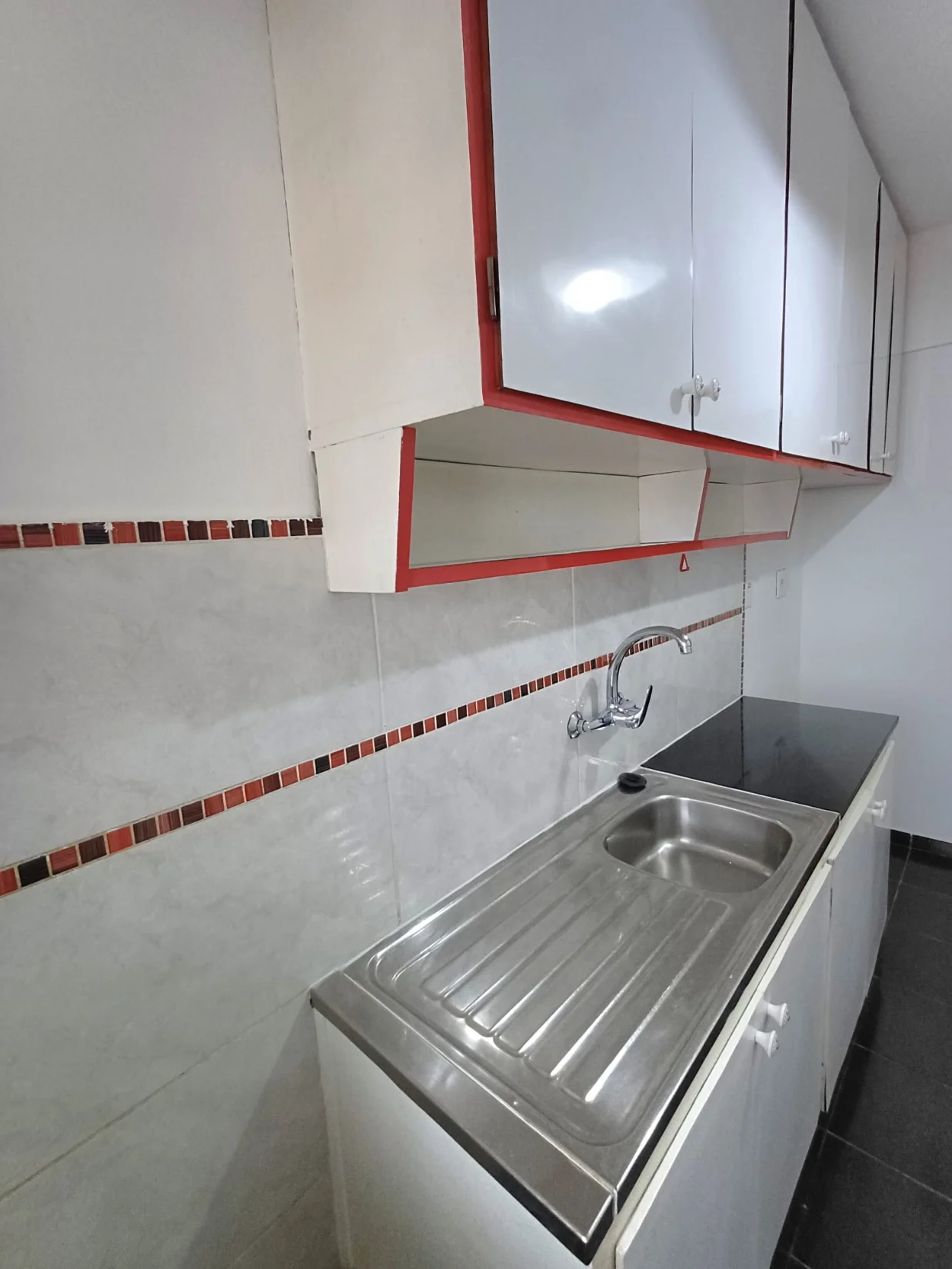 Cocina con placares aéreos y bajo mesada