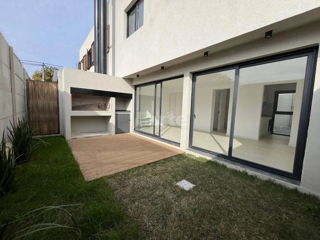Divina casa en un conjunto de 14 casas con predio cerrado y seguridad perimetral. Cada casa cuenta con su cochera y patio de uso exclusivo con parrillero. En planta baja amplio living comedor apaisado lo que brinda una espectacular luminosidad e integración con el fondo, cocina semi integrada con doble mesada y baño social. En planta alta 2 dormitorios en suite, el principal con vestidor y área de escritorio. Las casas se entregan con preinstalación para aire acondicionado y la previsión para instalar estufa de alto rendimiento en el living.