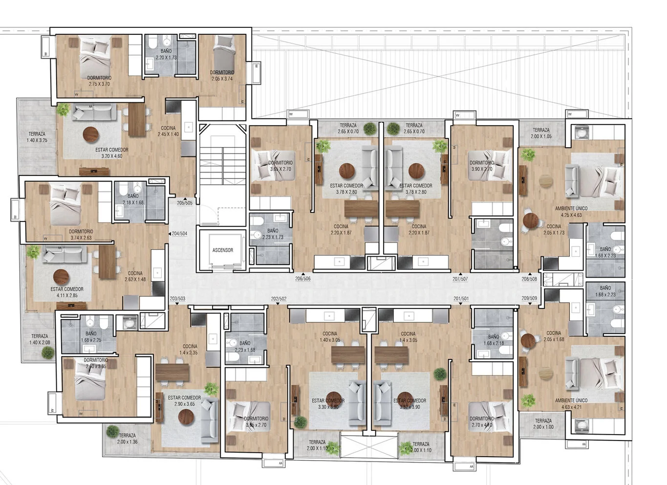 Unidades luminosas, con terminaciones de gran calidad. Pisos terminados con tablas vinílicas, cocinas con aéreos y bajo mesadas, extracciones, placard en los dormitorios incluidos.