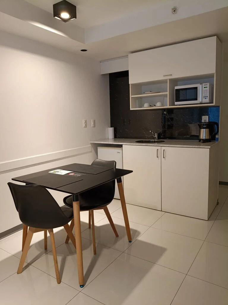 Kitchenette con Frigobar, Anafe, Platos, Cubiertos y Microondas.