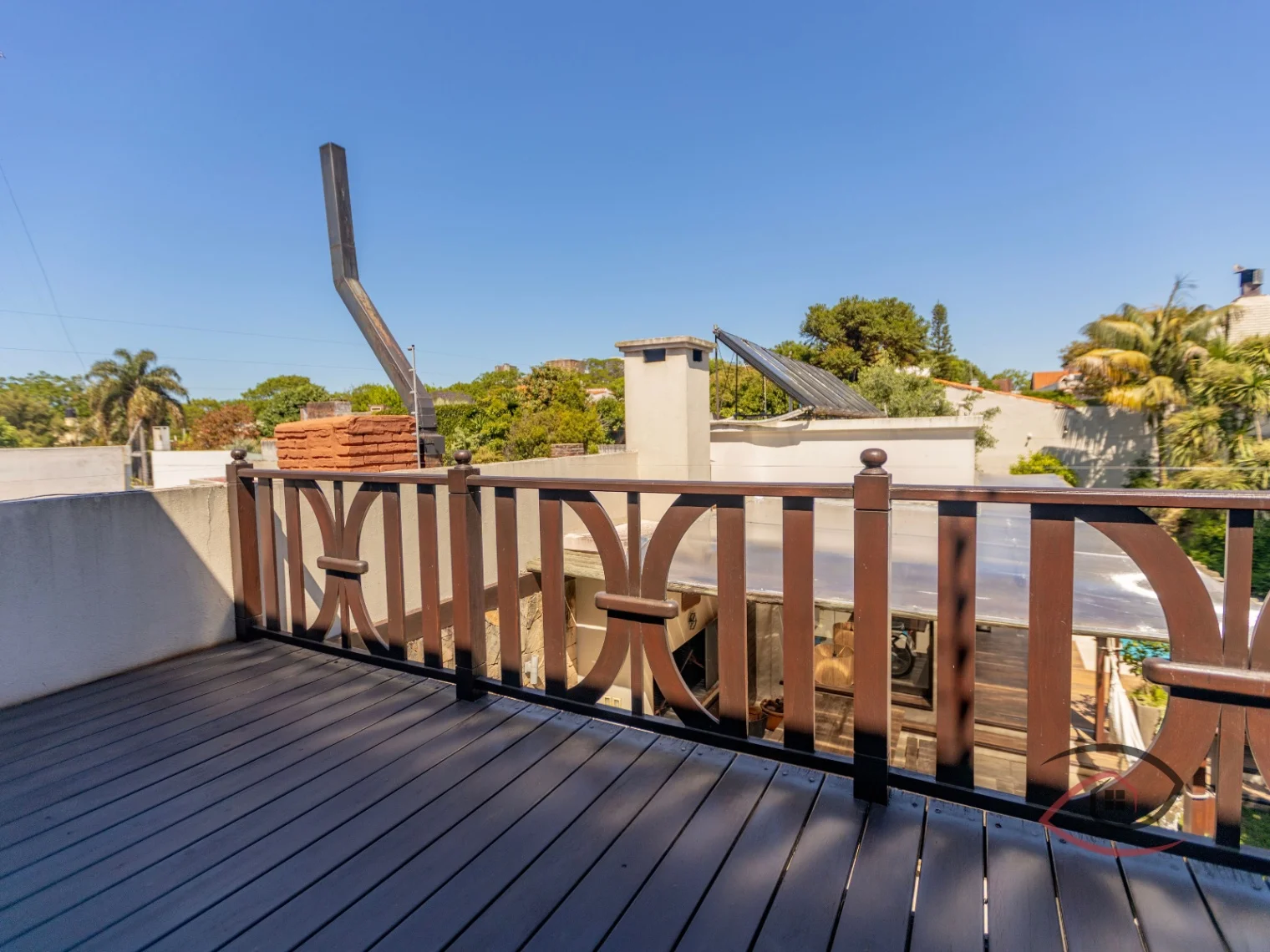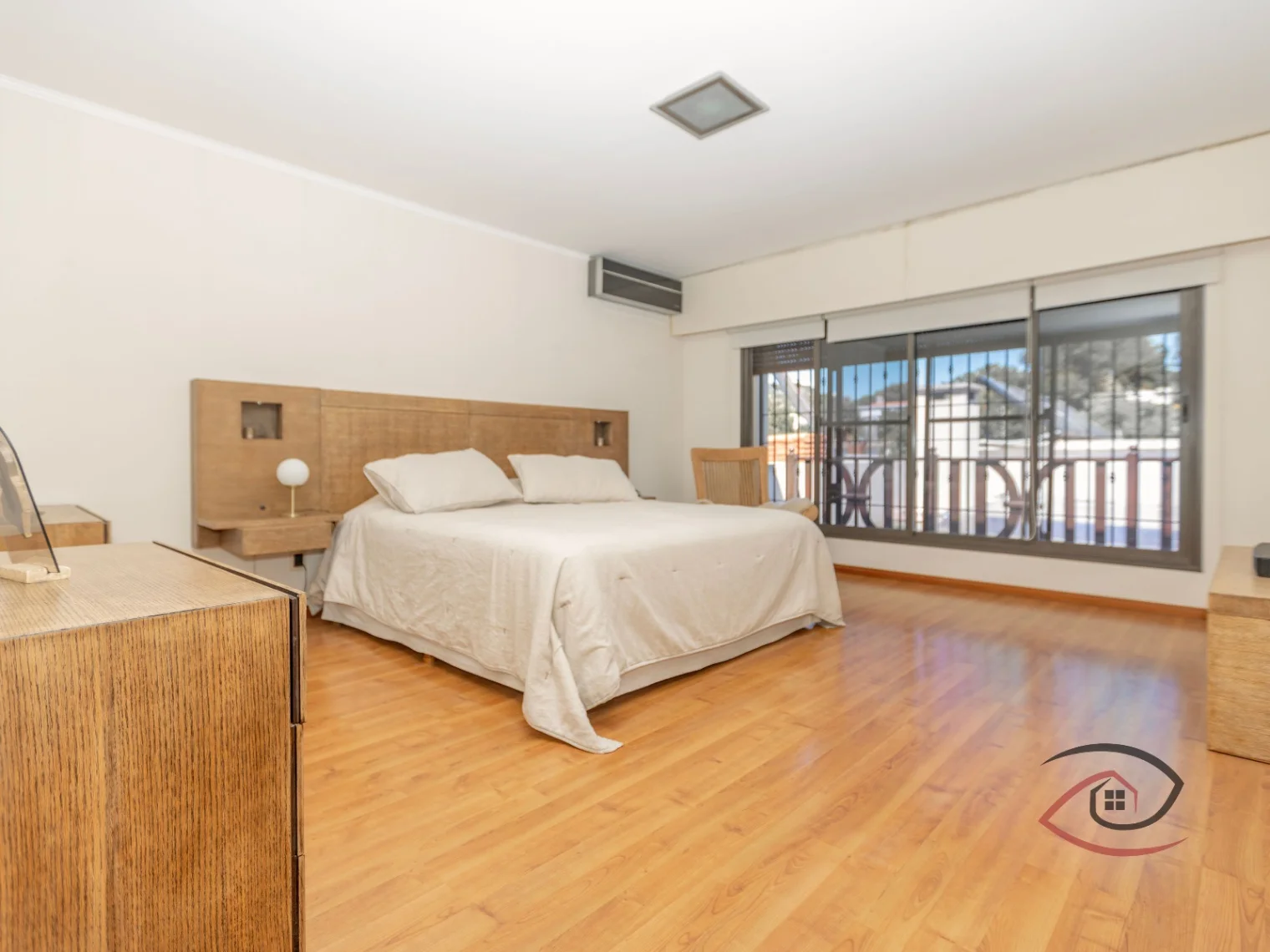 En la planta alta, la hermosa escalera de lapacho con claraboya brinda una iluminación natural excepcional. Esta planta alberga tres dormitorios, todos en suite y con aire acondicionado, destacando la suite principal que incluye un vestidor y un amplio balcón que se asoma al jardín trasero. Los otros dos dormitorios, situados al frente, también cuentan con acceso a un balcón. La propiedad se encuentra en excelente estado, lista para su ingreso inmediato, y está equipada con un sistema de alarma, portones automáticos y persianas automatizadas, garantizando así la máxima seguridad y confort.