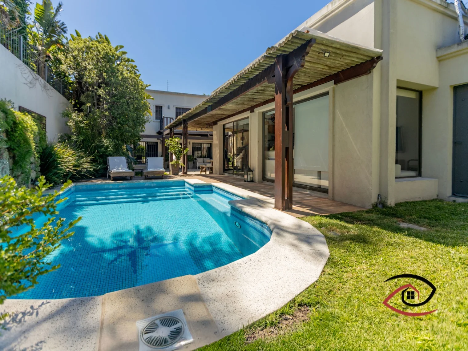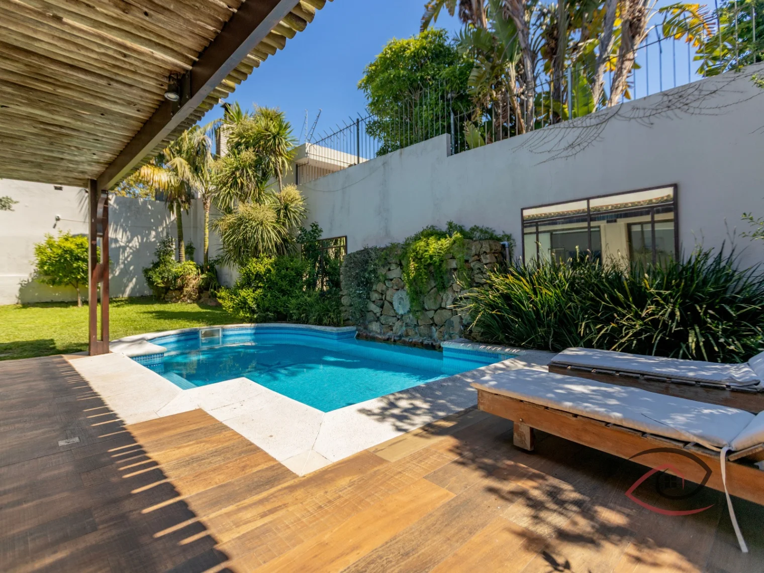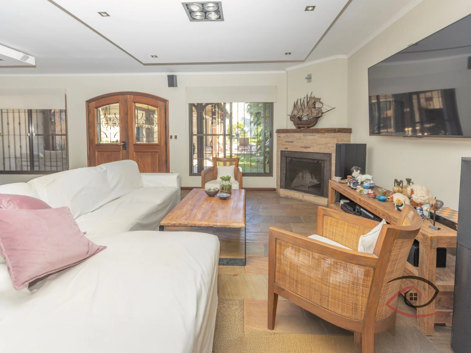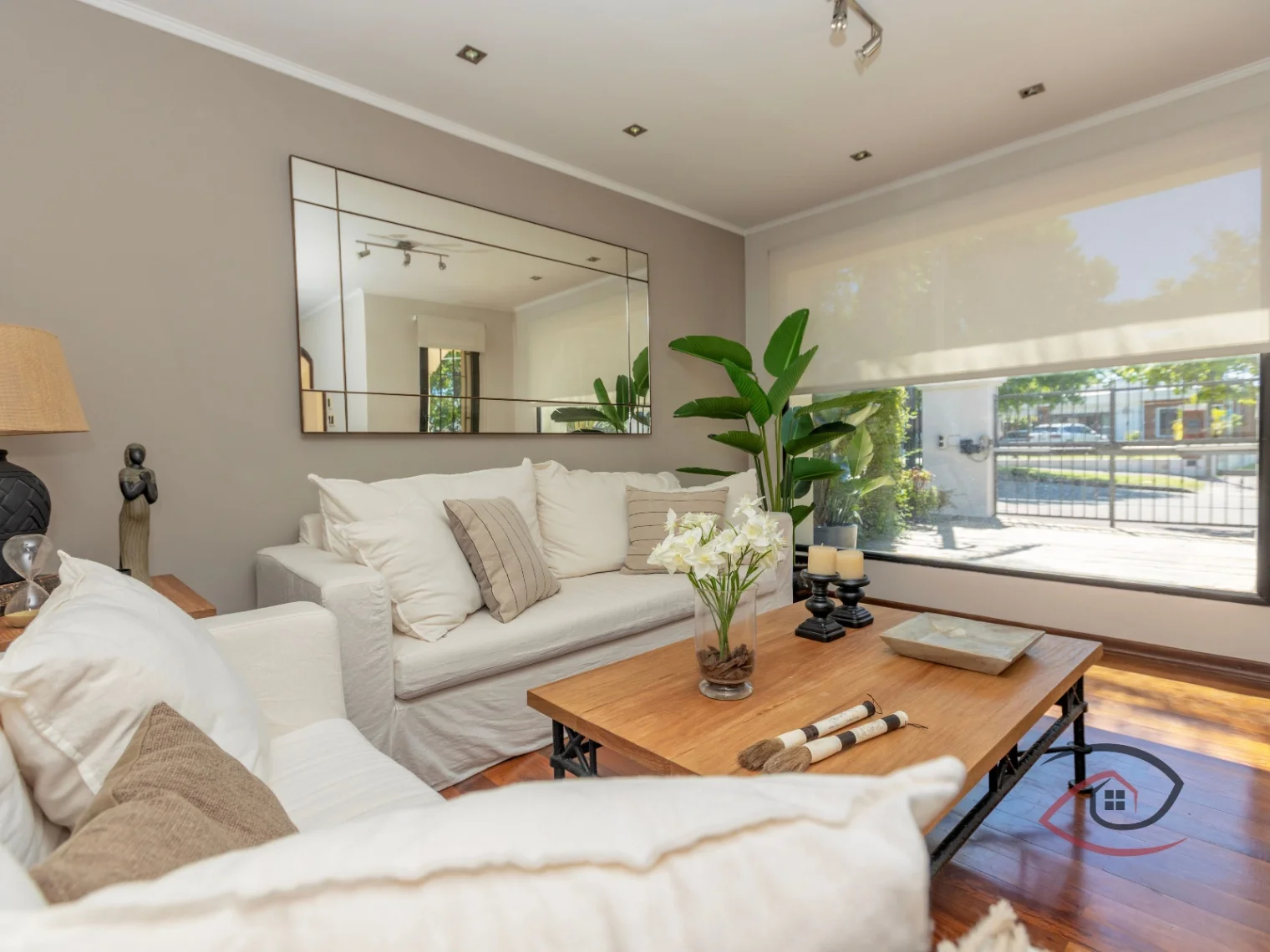 El gran living comedor se complementa con un estar que incluye estufa a leña y aire acondicionado, ofreciendo un ambiente cálido y acogedor. Desde aquí, se accede al fondo donde encontrará una barbacoa cerrada con aire acondicionado, parrillero techado y un baño adicional, junto a una piscina climatizada con bomba de calor. La propiedad también cuenta con losa radiante y caldereta a gas, con monitores independientes en planta baja y alta. Entrada de servicio lateral, garaje cerrado con depósito y la zona de laundry que añaden un nivel extra de comodidad.
