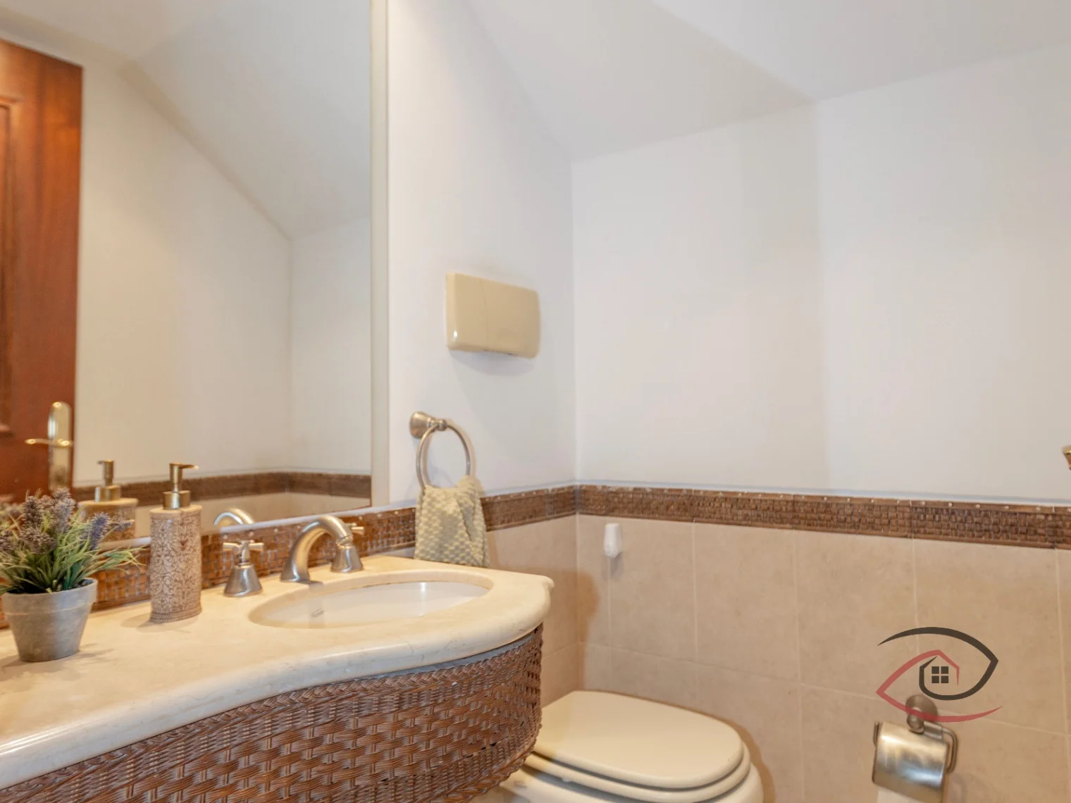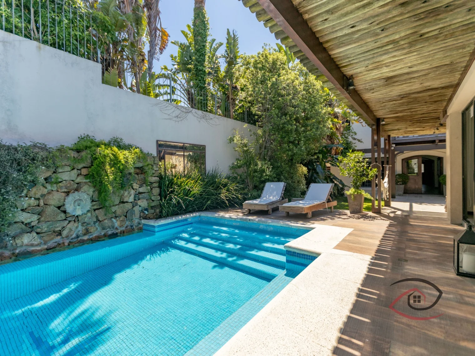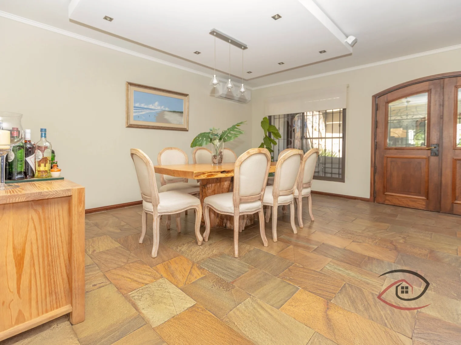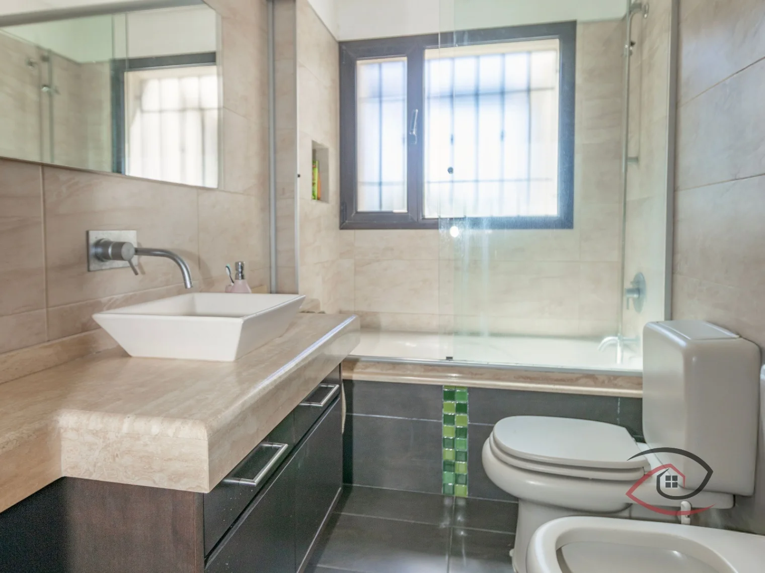 El gran living comedor se complementa con un estar que incluye estufa a leña y aire acondicionado, ofreciendo un ambiente cálido y acogedor. Desde aquí, se accede al fondo donde encontrará una barbacoa cerrada con aire acondicionado, parrillero techado y un baño adicional, junto a una piscina climatizada con bomba de calor. La propiedad también cuenta con losa radiante y caldereta a gas, con monitores independientes en planta baja y alta. Entrada de servicio lateral, garaje cerrado con depósito y la zona de laundry que añaden un nivel extra de comodidad.