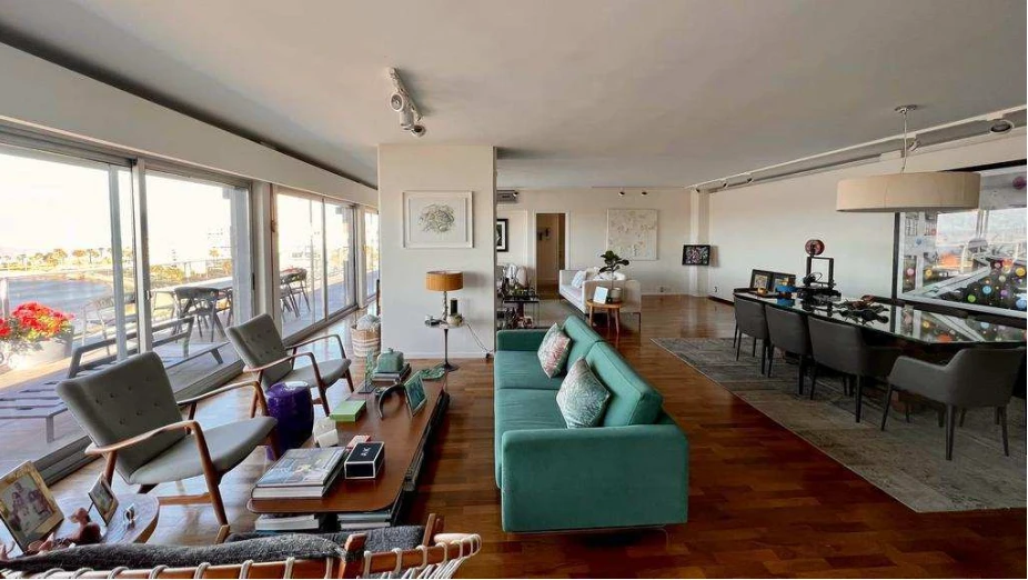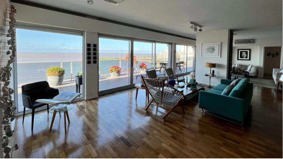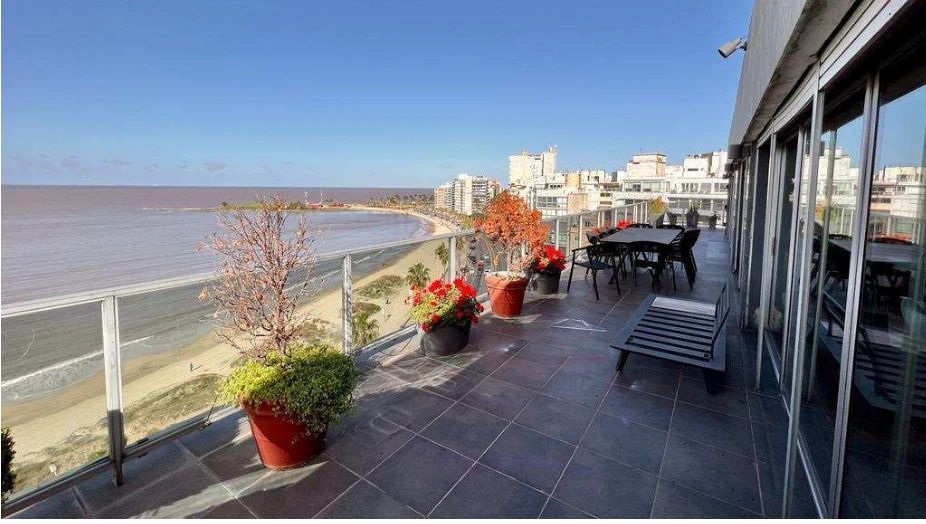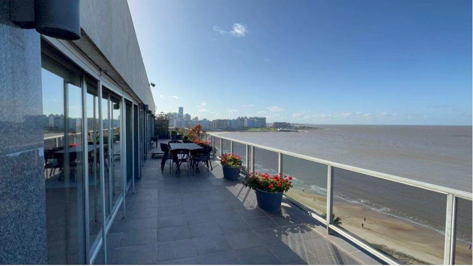 Exclusivo penthouse de 333 m² interiores y 130 m² de terrazas, con una vista inigualable al mar sobre la Rambla y esquina Av. Brasil. Una propiedad única por su amplitud, luminosidad y distribución, con frente de 27 metros sobre la Rambla y 11 metros sobre Av. Brasil, en una sola planta. Distribución y espacios: - Amplio living-comedor con grandes ventanales al mar, salida a terraza principal y estufa a leña. - Estar y comedor diario muy soleados, también con estufa a leña. - 5 dormitorios (uno actualmente integrado al living), 4 baños completos + toilette. - Suite principal con vestidor, placares y baño con doble bacha y vista al mar. - Cocina definida con antecocina, amoblamiento Johnson, horno empotrado, anafe y terraza lavadero con parrillero. - 2 dormitorios y baño de servicio. - Doble circulación y tres accesos independientes (principal, de servicio y privado sobre Av. Brasil). Detalles destacados: - Pisos de lapacho. - Persianas motorizadas y cerramientos de aluminio con doble vidrio al frente. - Aire acondicionado en todos los ambientes (split y ductado). - Calefacción central por losa radiante y agua caliente central (incluidas en los gastos comunes). - 2 garajes (uno detrás del otro) y dos depósitos. Amenities y servicios del edificio: - Piscina climatizada cerrada. - Gimnasio. - Salón de usos múltiples. - Portería 24 hs, cámaras de vigilancia y CCTV. Gastos comunes: aprox. $60.000 (variables según consumo). Un apartamento de categoría, con vistas panorámicas y comodidades únicas, ideal para quienes buscan vivir frente al mar en uno de los puntos más exclusivos de Pocitos.