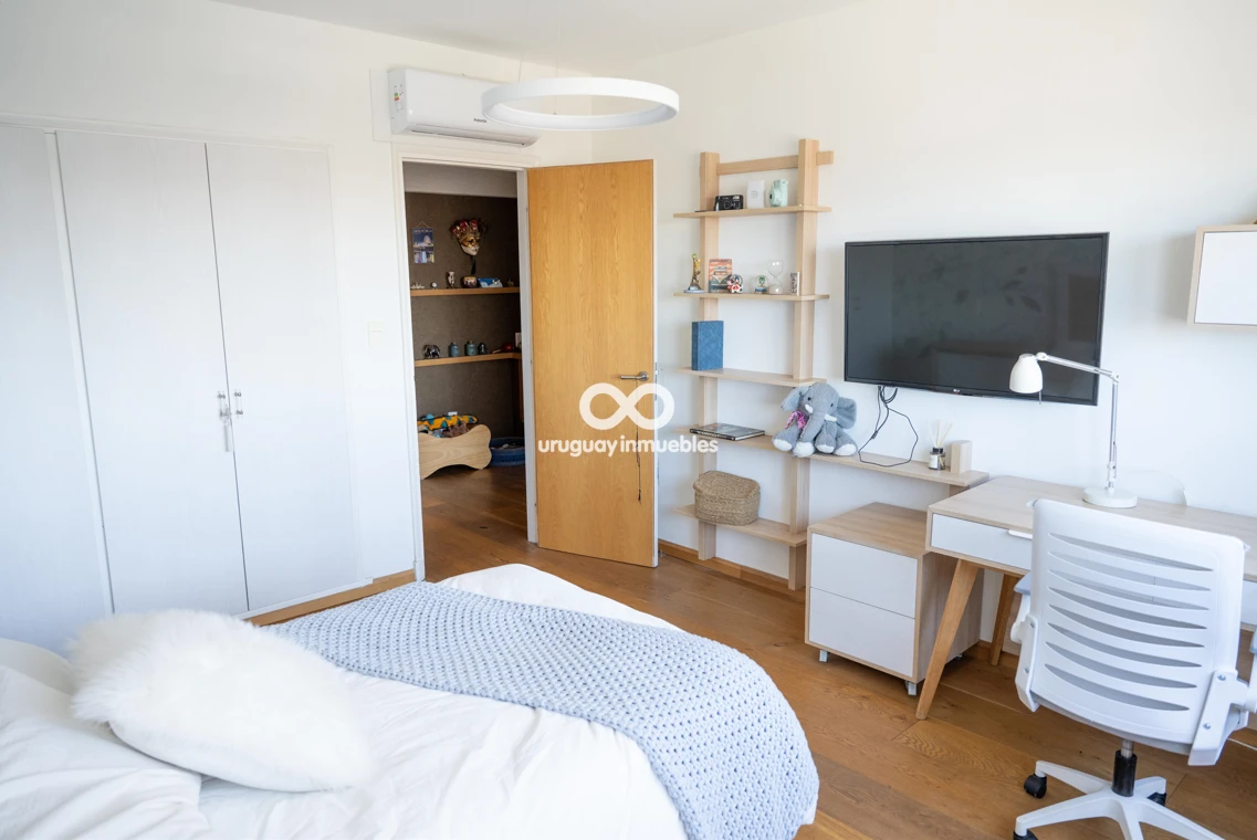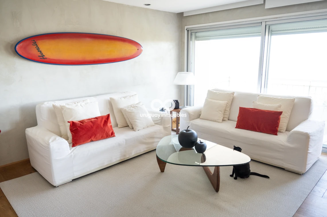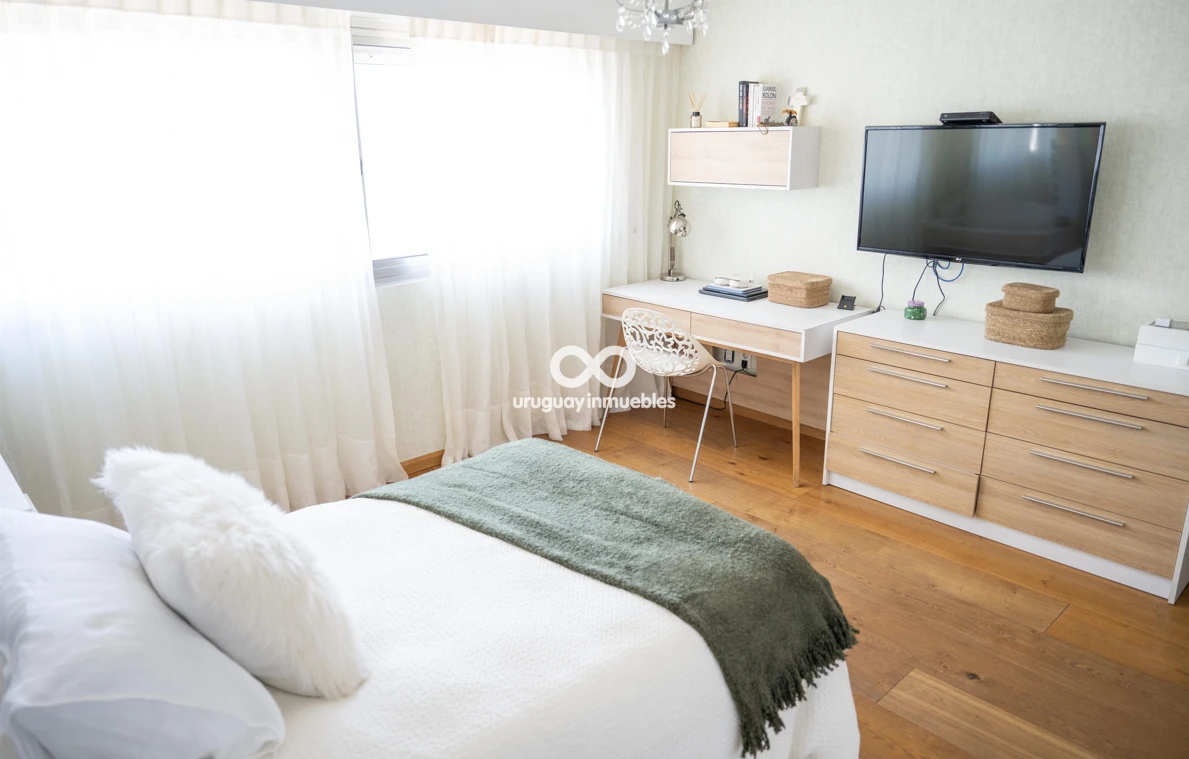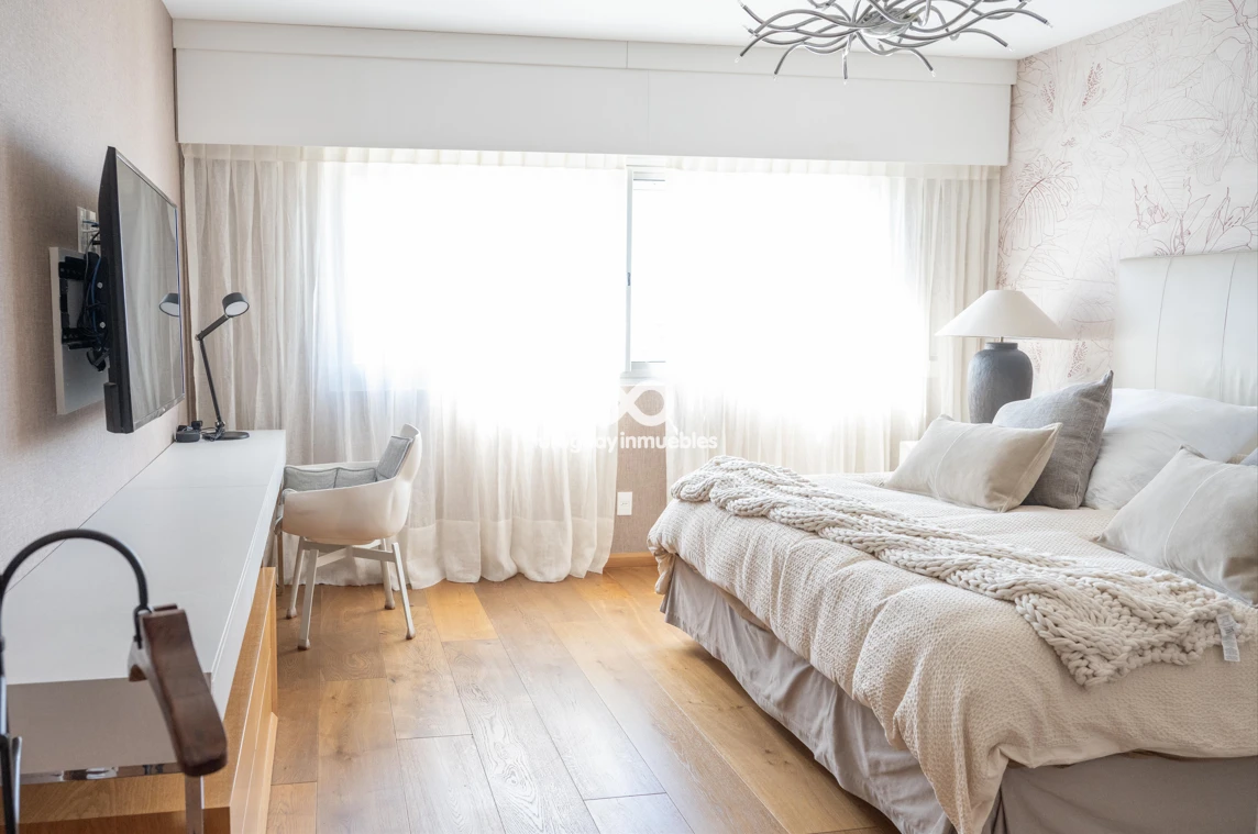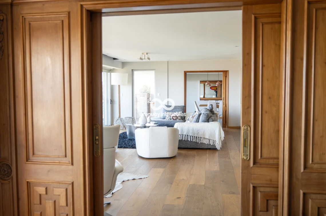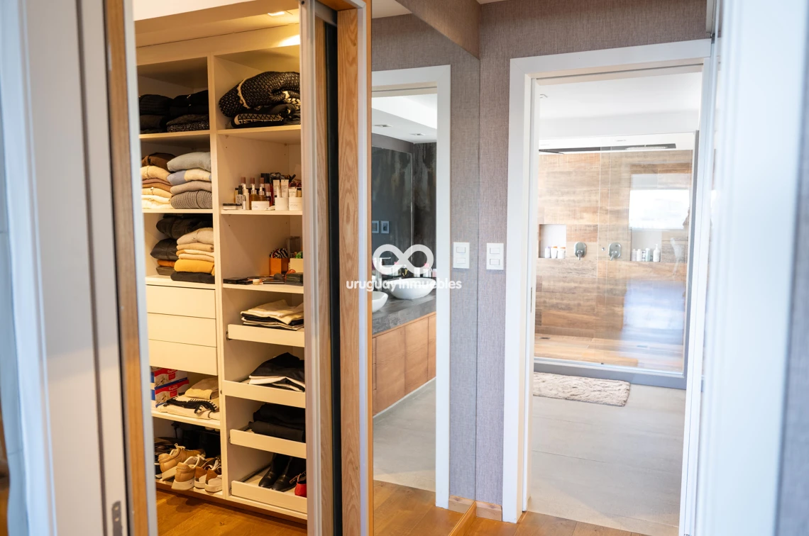 Espectacular apartamento en venta con privilegiadas vistas al Golf y al mar. Sólida planta de 330 m², muy luminosa y soleada, con amplios ambientes. Cuenta con entrada principal y de servicio, lo que permite una cómoda doble circulación que separa el área social del área íntima. Al ingresar, nos recibe un elegante living central, que se comunica con un estar y un comedor. Todos estos ambientes se orientan hacia el frente y cuentan con acceso a una amplia terraza con vistas panorámicas al Golf y al mar. En esta área también se encuentran un baño social y una amplia cocina de diseño moderno, equipada con una gran isla central y múltiples placares que brindan excelente capacidad de guardado. Además, dispone de terraza lavadero y completa dependencia de servicio. En el área íntima, un hall de distribución conduce a cuatro dormitorios. El dormitorio principal en suite cuenta con vestidor y un baño de generosas dimensiones. Los otros tres dormitorios comparten un baño completo, todos con excelente iluminación natural y muy buenas dimensiones. La propiedad está equipada con aire acondicionado central en el área social y en la cocina, además de splits individuales en cada dormitorio. Cuenta también con calefacción por losa radiante con sensores de temperatura sectorizados en tres áreas del apartamento, y sistema central de agua caliente. La tecnología también está presente mediante sistema de domótica, cortinas automatizadas, doble ventana y persianas en todos los ambientes, aportando mayor confort y eficiencia. Incluye dos garages independientes, box de guardado y bicicletero en planta baja. El edificio ofrece seguridad 24 horas con portería permanente y sistema de videovigilancia (CCTV).