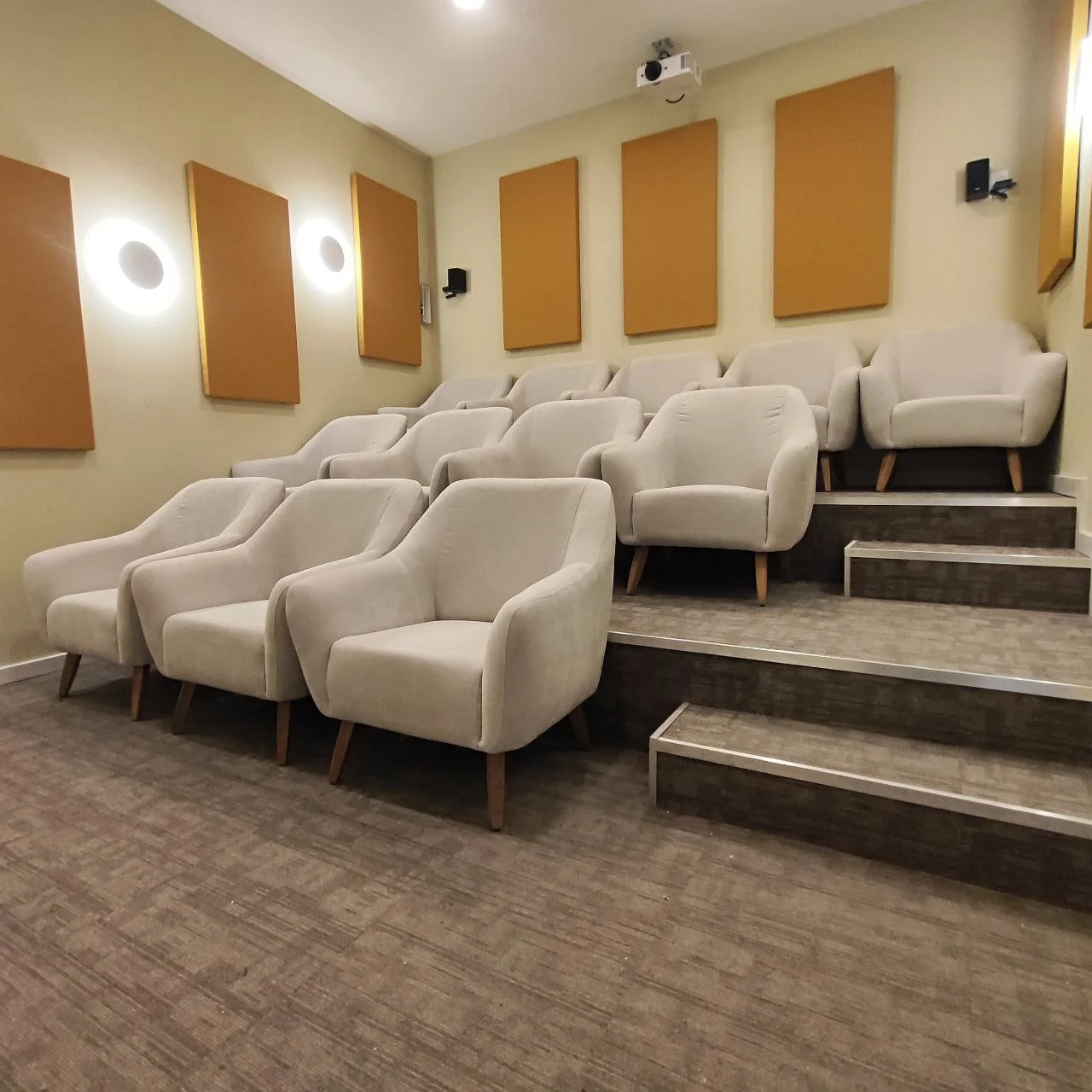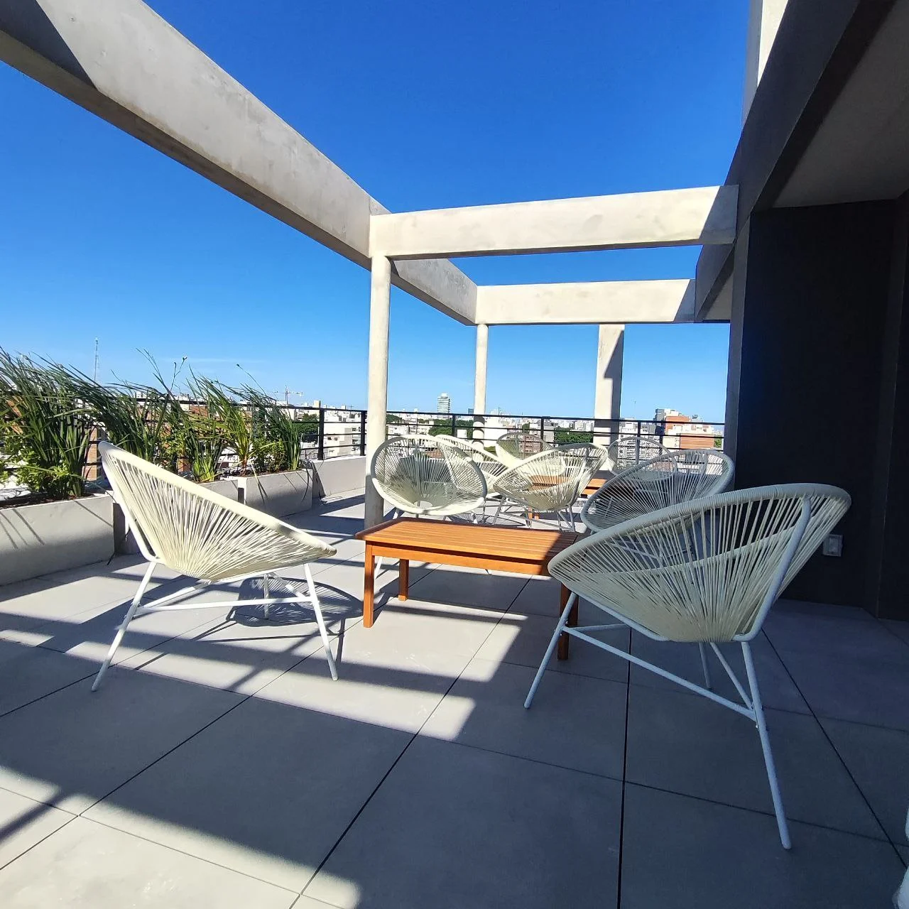 Edificio con Piscina, living a cielo abierto, barbacoas abiertas y techadas, lavadero, dos gimnasios, cine.