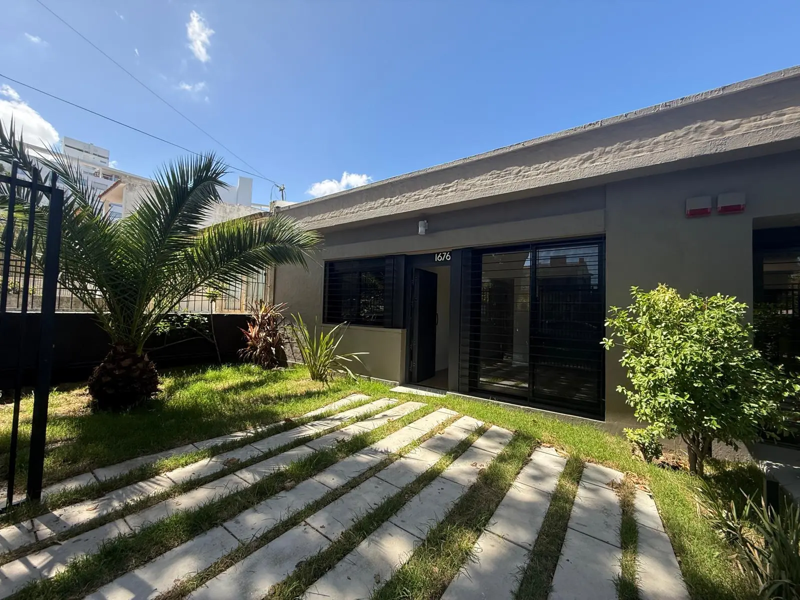 La casa cuenta con jardín al frente con cochera para un auto y un amplio fondo con un sector techado y un sistema de alarma. Todas las aberturas cuentan con rejas y mosquiteros.