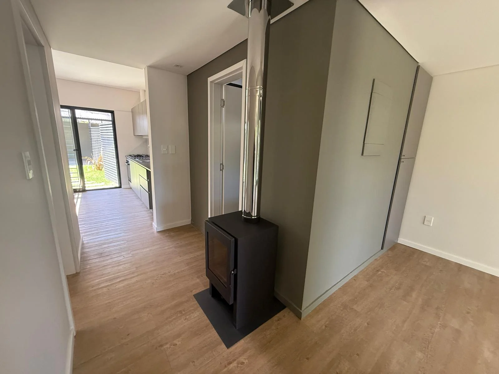Amplio y luminoso living comedor equipado con AACC y estufa de leña doble combustión