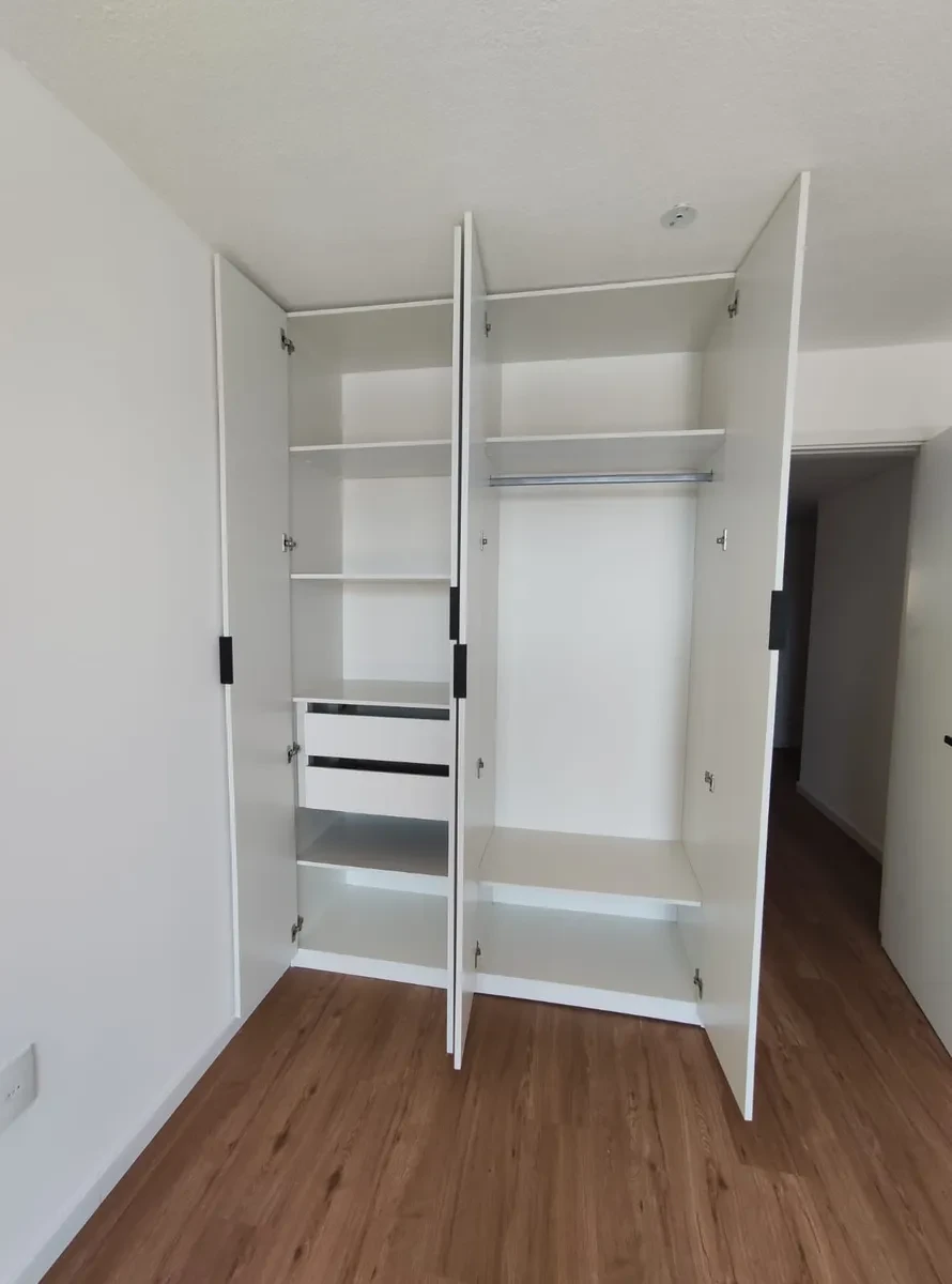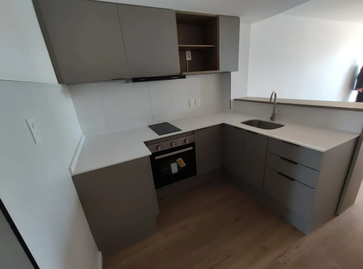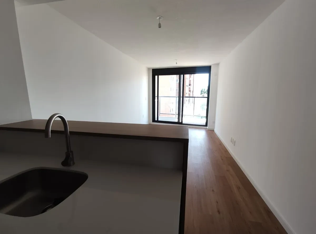 Un dormitorio con placard empotrado, living comedor, cocina integrada equipada con horno, anafe, campana y placares aereos y bajo mesada, baño completo.