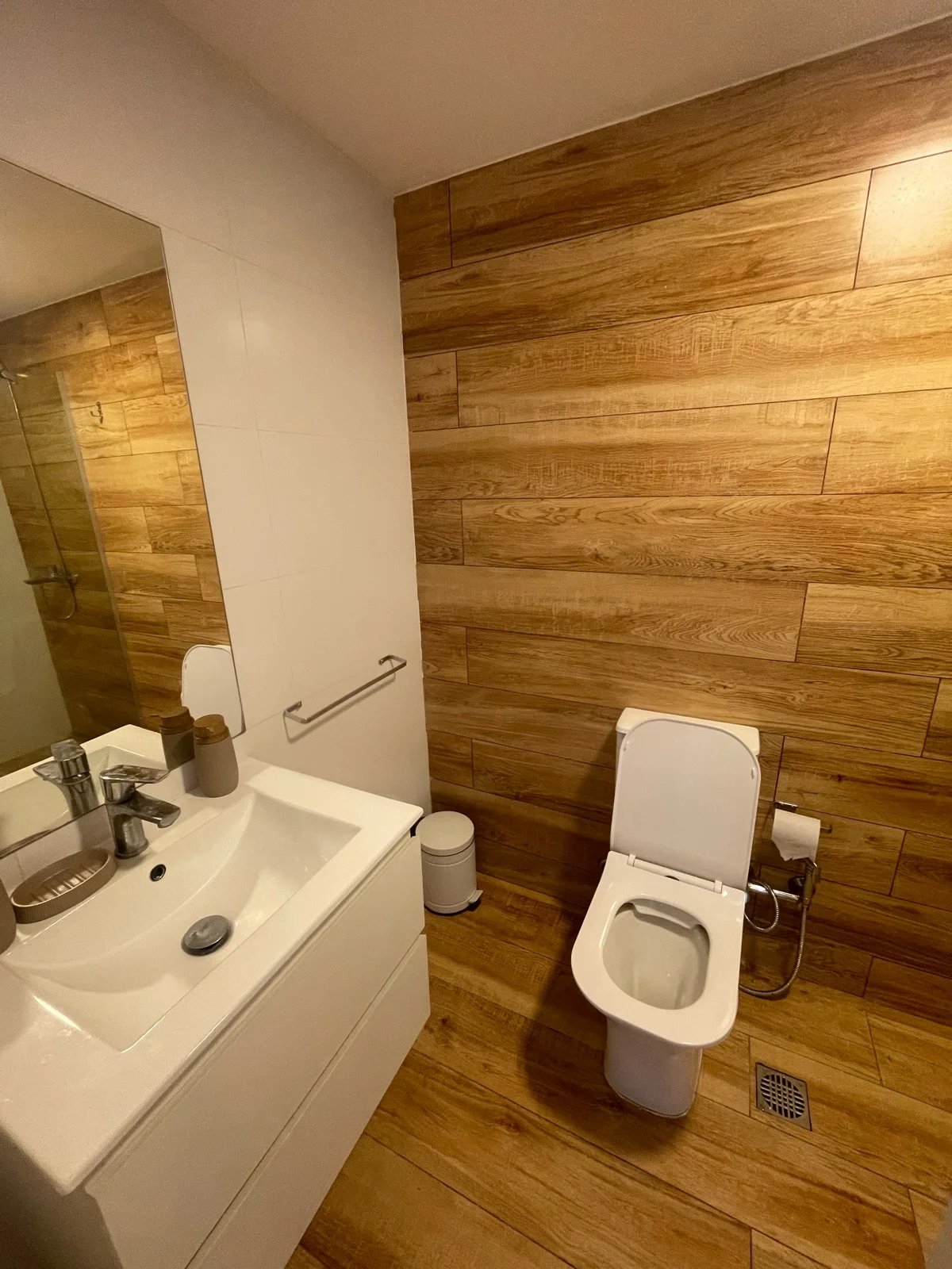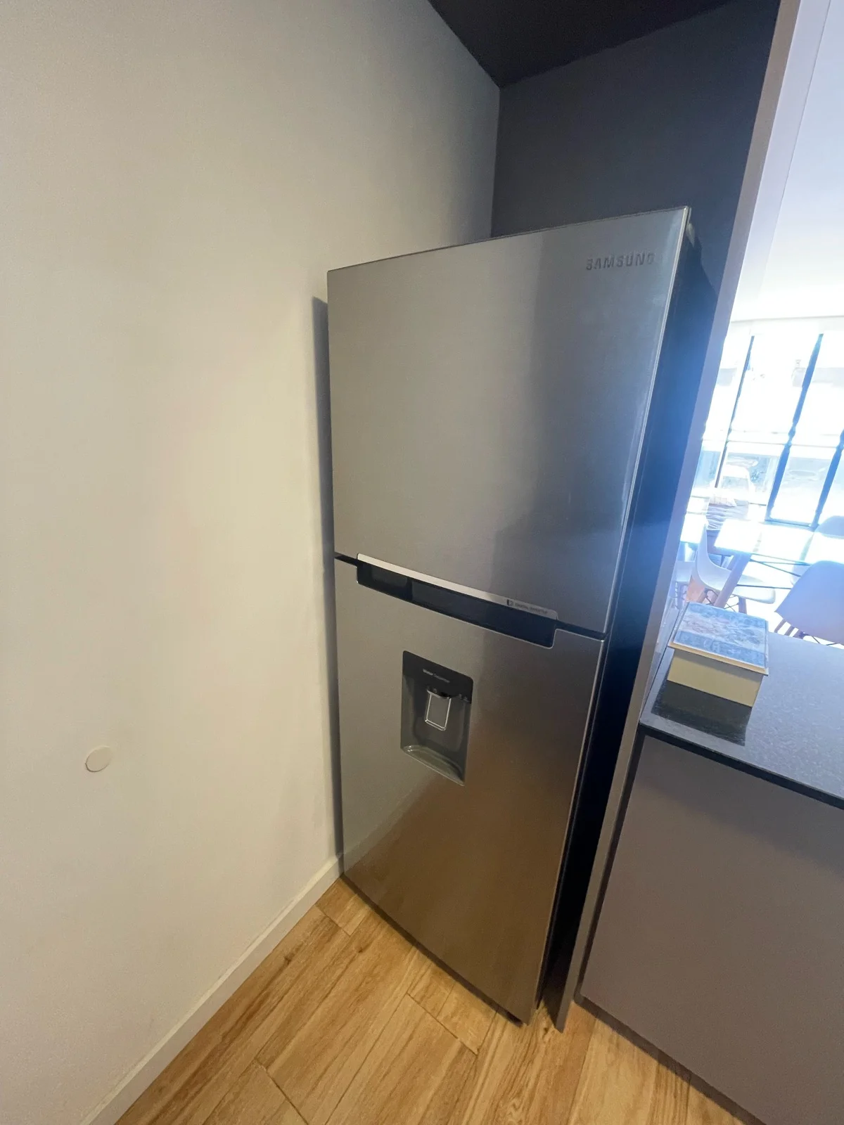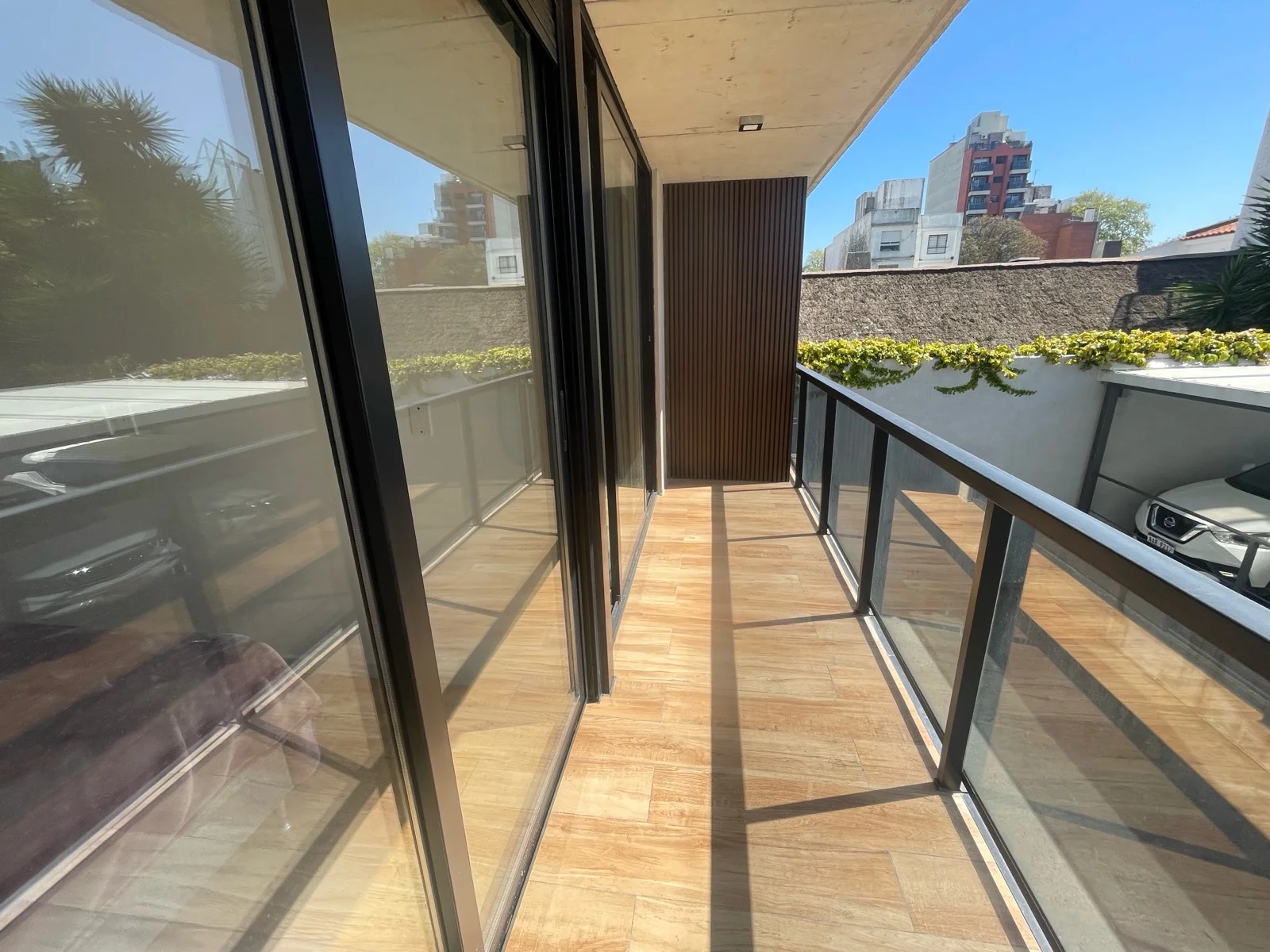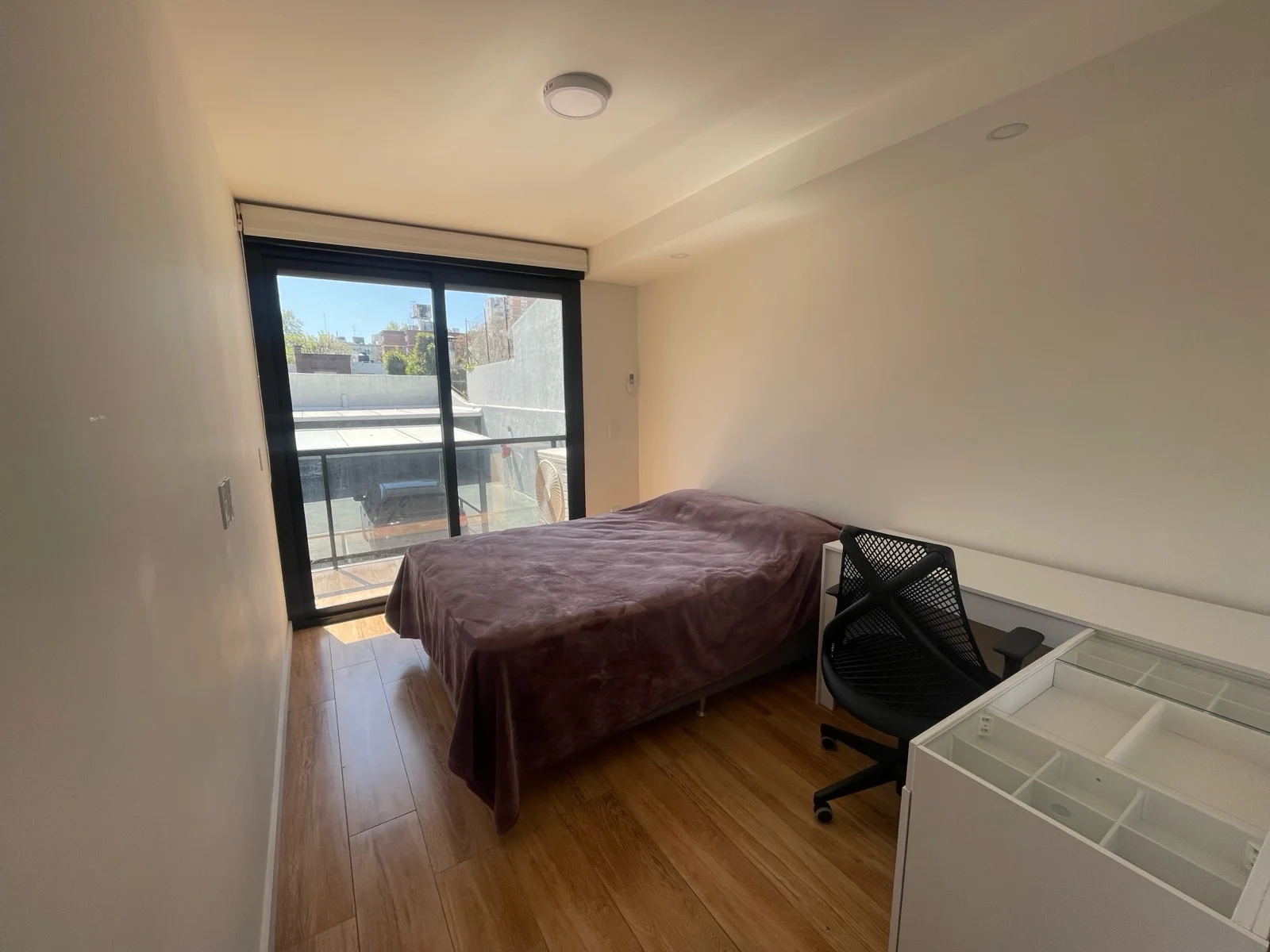 El dormitorio incluye un vestidor, brindando un espacio práctico y organizado. Cuenta con Aire Acondicionado. El baño está diseñado con una elegante mampara, aportando modernidad y confort. El apartamento también cuenta con pisos de porcelanato.