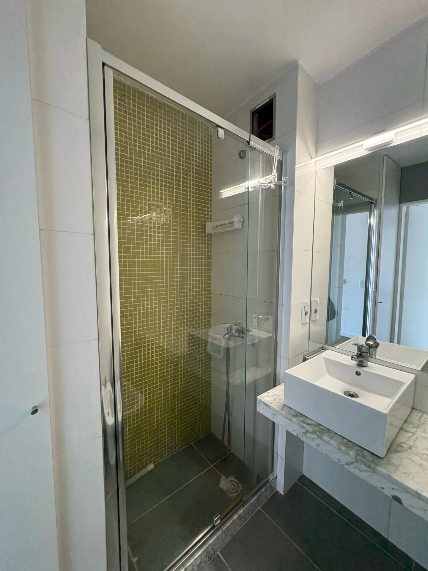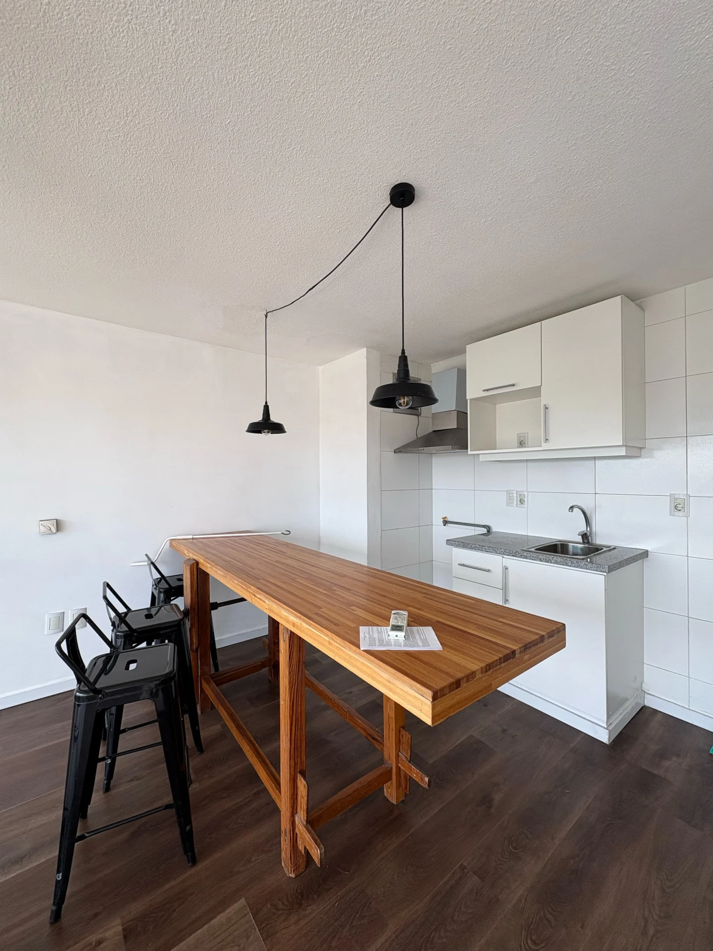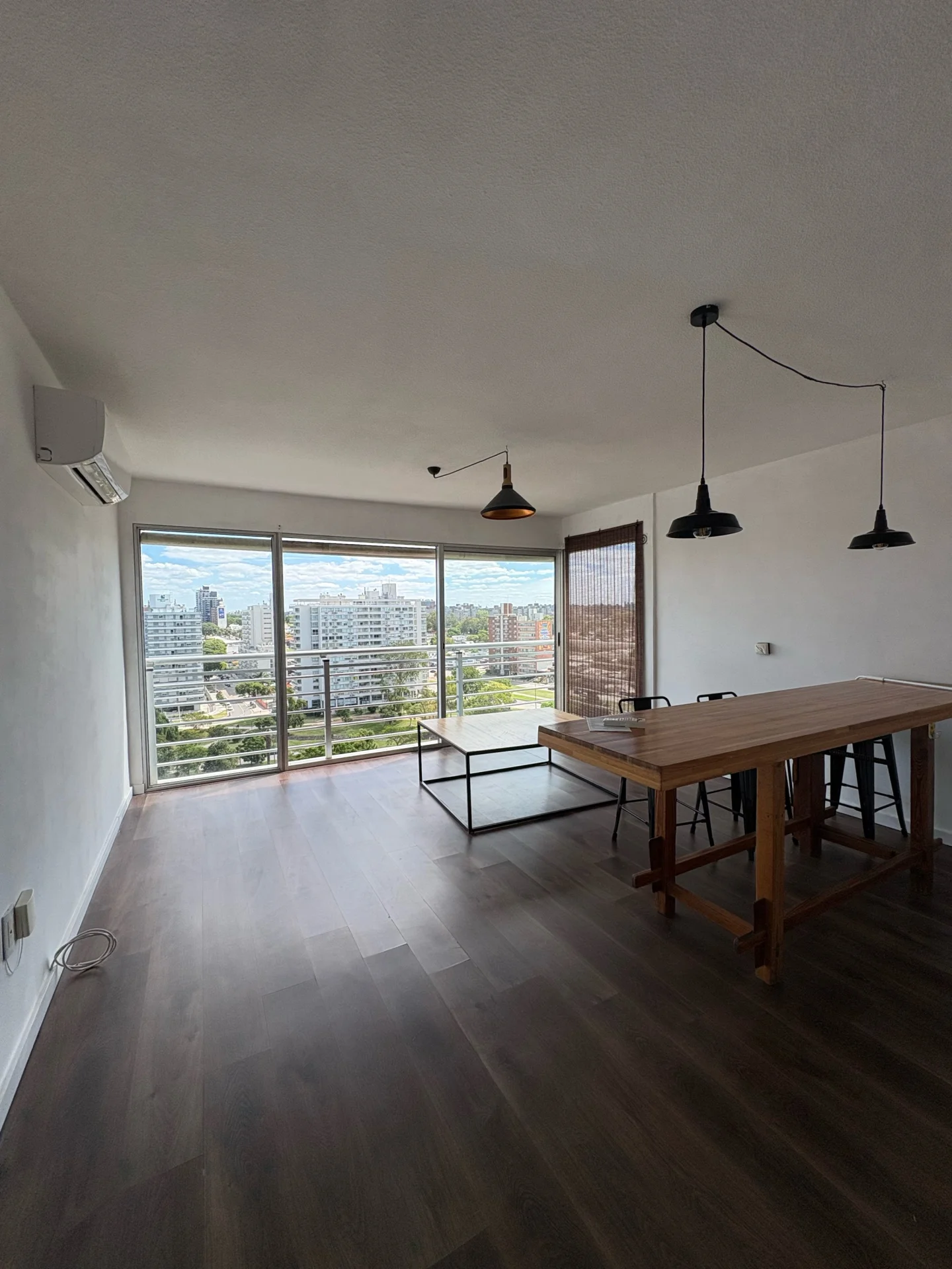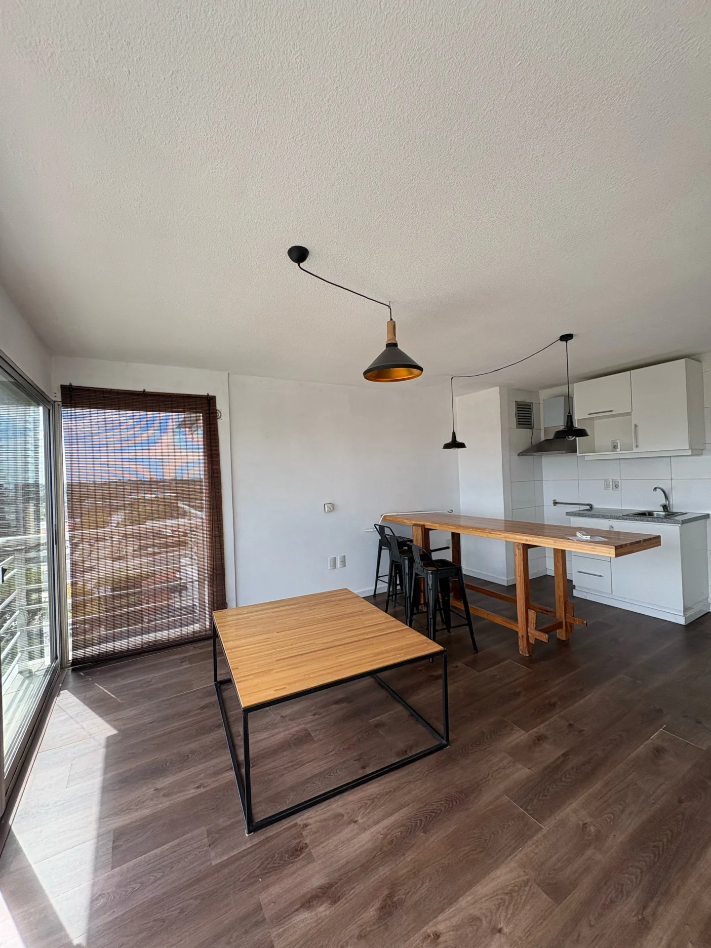 La unidad cuenta con cocina integrada equipada con campana extractora y muebles aéreos y bajo mesada. Dispone de losa radiante eléctrica individual distribuida en 3 zonas, aire acondicionado en ambos ambientes y espacios bien distribuidos con muy buena iluminación natural. Además, incluye lavarropas, campana extractora y los muebles que se aprecian en las fotos.
