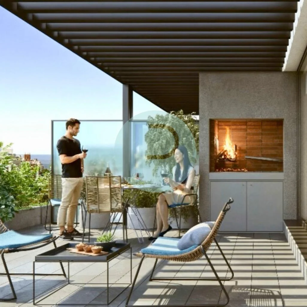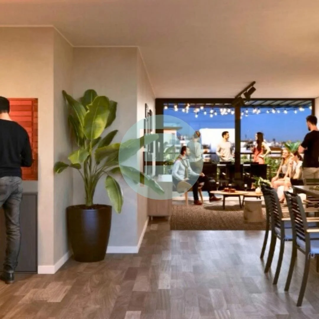 En el ultimo nivel, un rooftop de uso común ofrece parrillero, kitchenette, baño y un espacio de reunión, complementado por un solárium con vistas abiertas a la ciudad.