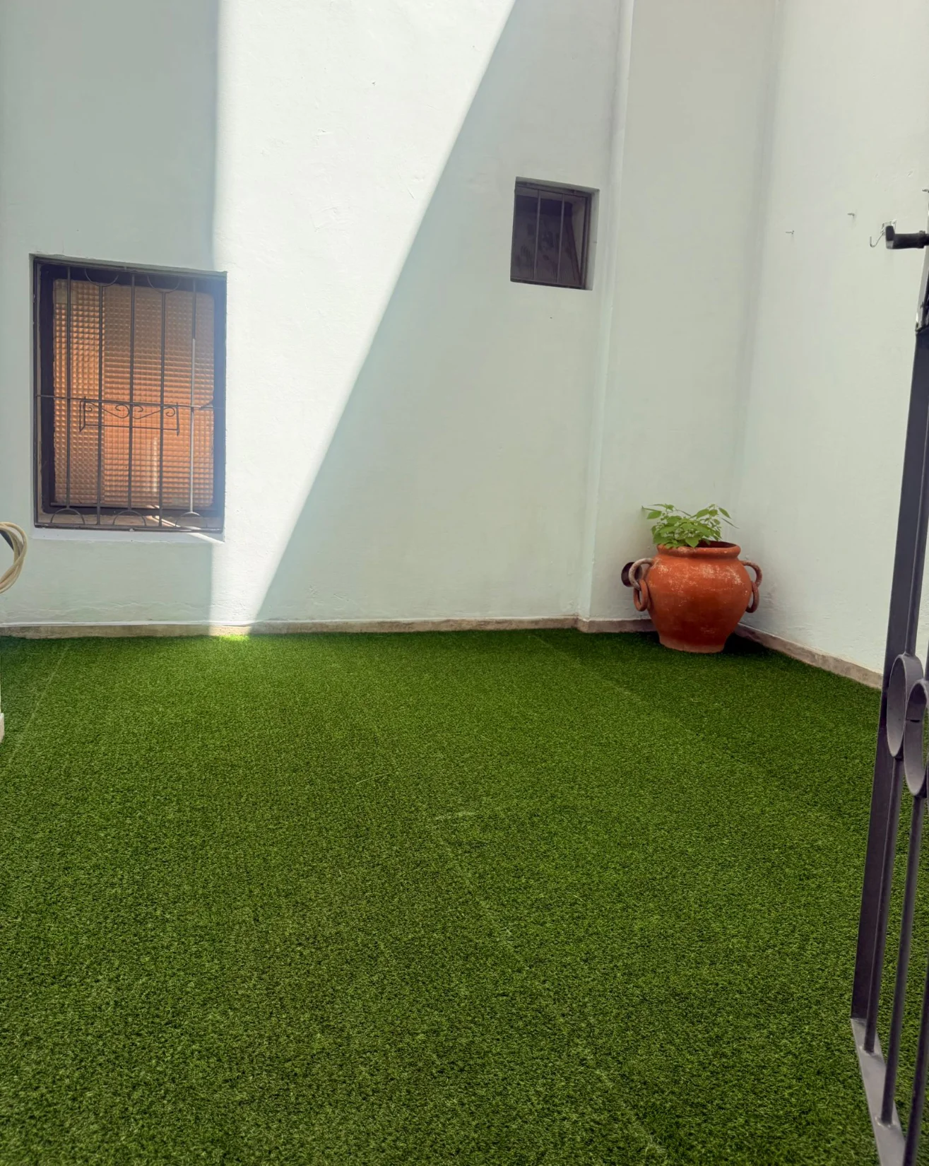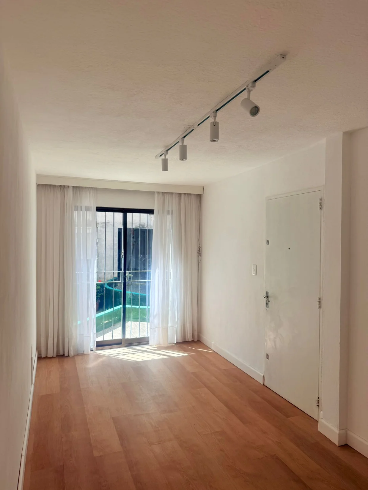 Luminosidad y Confort: Luminoso living-comedor con aire acondicionado y puerta-ventana que conecta a un hermoso patio de uso común, asegurando excelente ventilación e iluminación natural.
