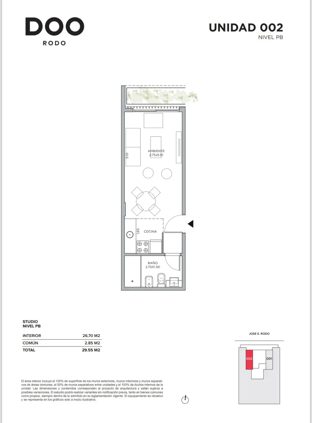 Doo Rodó es un Proyecto en Construcción en Cordón Sur, la zona de mayor crecimiento de la ciudad y con gran potencial. Precio lanzamiento. Ideal para inversionistas. Todos los Apartamentos cuentan con una gran luminosidad y disfrutan de la luz del sol a través de amplios ventanales y terrazas. Un Proyecto que te conecta con todo y que se adapta a Vos. Es un edificio de 7 pisos, con apartamentos de 1 y 2 dormitorios. Grandes dimensiones. La fecha estimada de finalización del edificio es Setiembre 2026. Es un Proyecto que se encuentra amparado bajo la ley de Vivienda Promovida: # Exoneración de ITP (2 % sobre valor de catastro). # Exoneración de IVA. # Exoneración de Impuesto al Patrimonio x 10 años. # Exoneración en el Impuesto a la Renta de los alquileres (por 10 años IRPF / IRAE . Apartamentos de 1 dormitorio desde: 122.000 dólares. Apartamentos de 2 dormitorios desde: 155.000 dólares. Amenities: (Características para la vida de hoy) # Salón de usos múltiples con espectaculares vistas a la ciudad . Con parrillero, baño y kitchenette. # Laundry para mayor comodidad. # Gimnasio. # Previsión para carga de autos eléctricos. # Bicicletas para moverte en el barrio. # Amplias aberturas con cortinas de enrollar en living y dormitorios. # Pisos símil madera en living y dormitorios , porcelanato en terrazas, baños y cocinas. # Cerraduras inteligentes con control de acceso. Forma de pago: 10 % de seña 40 % compromiso compra 40 % en cuotas (durante el período de obra) 10 % Saldo a la ocupación 4 % Gastos de ocupación Vende: Jacques.Etcheverry Negocios Inmobiliarios. Comisión Inmobiliaria 3 % + IVA.