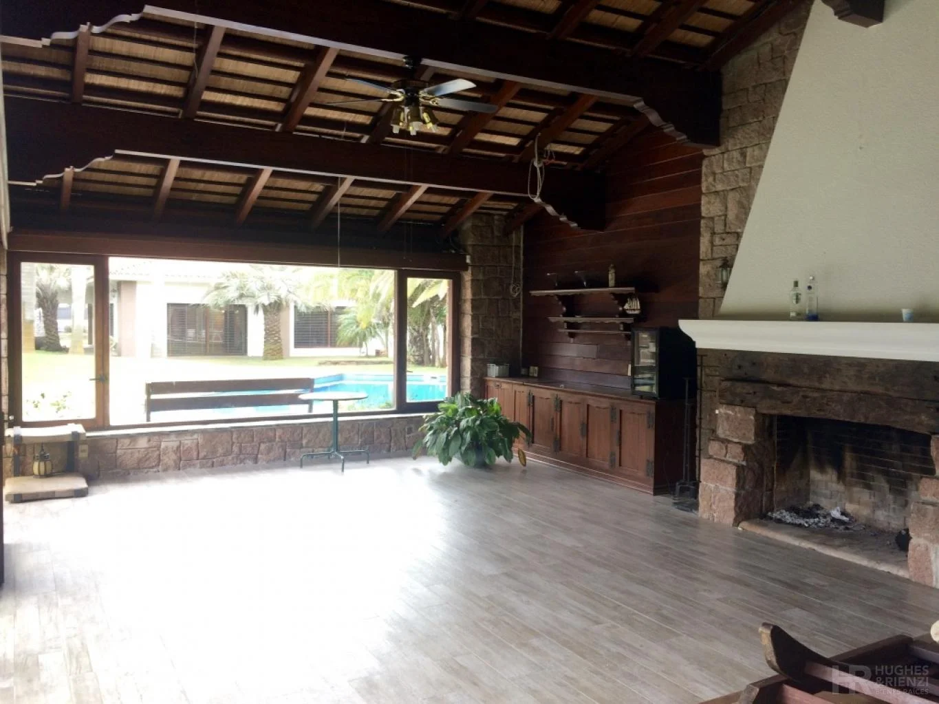 Espectacular jardín al fondo con piscina, parrillero, gran barbacoa con estufa a leña; jacuzzi con vista al jardín.