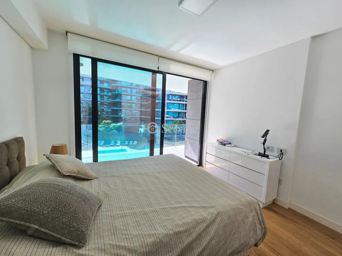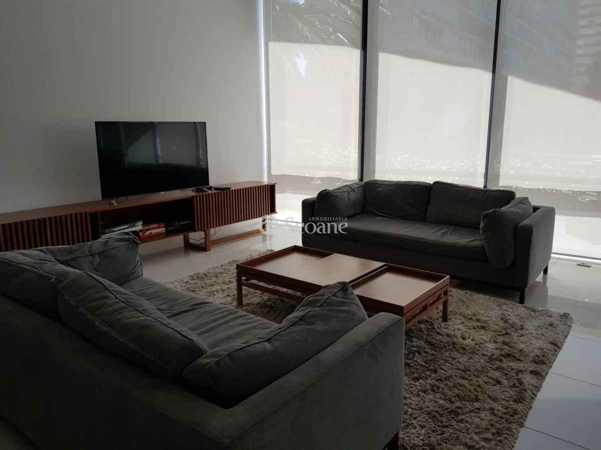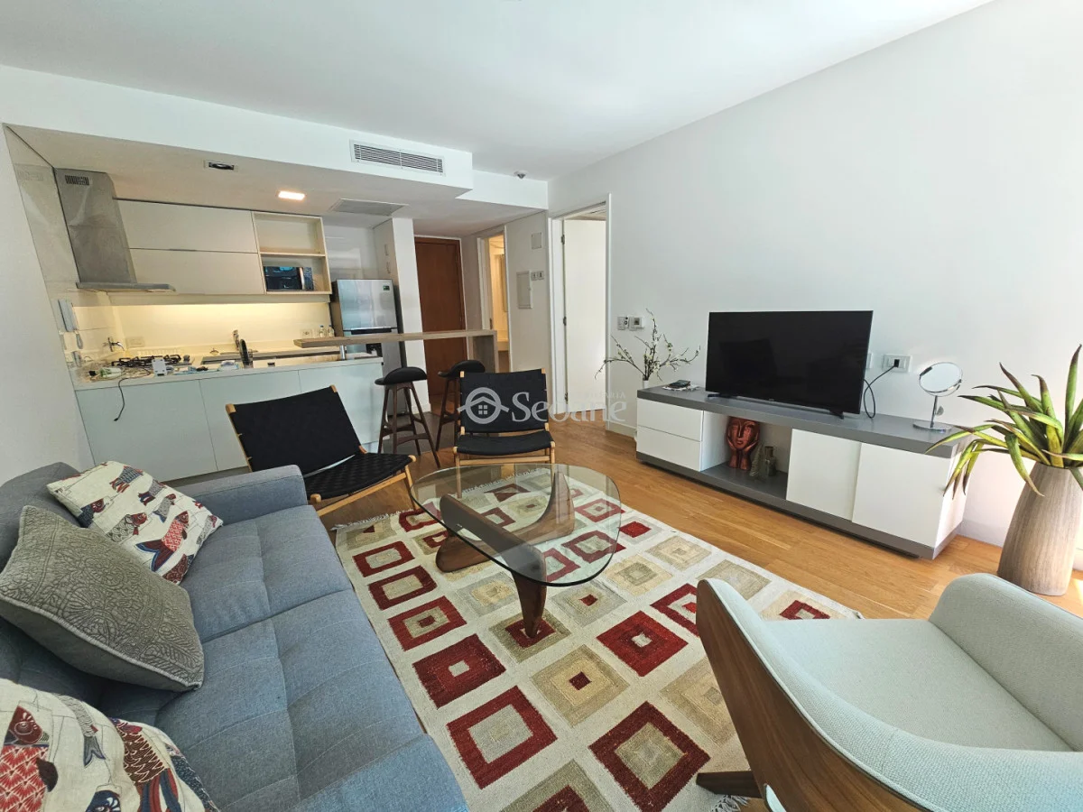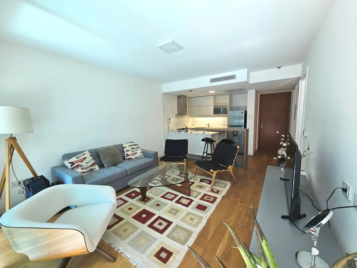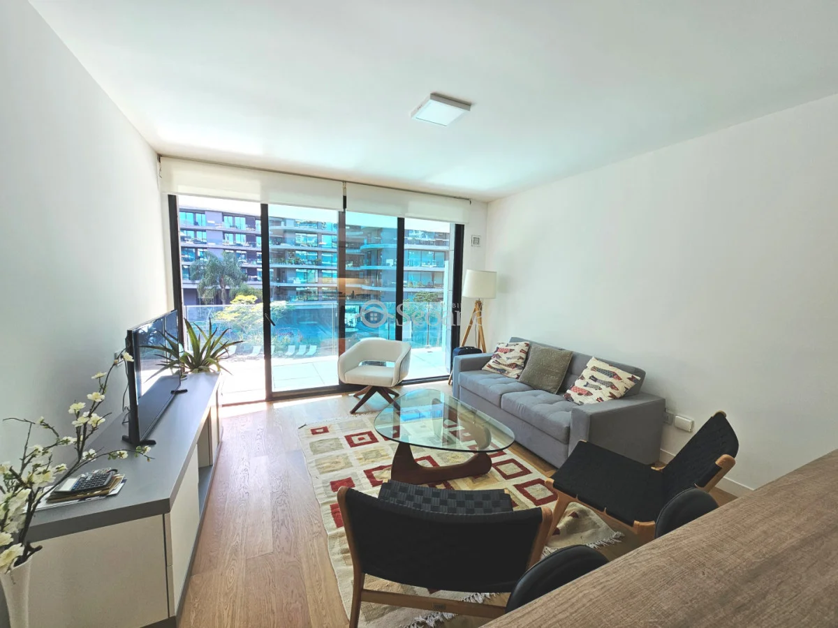 Exclusivo apartamento en Forum, con equipamiento de diseño. Hall de entrada. Amplia cocina integrada con horno anafe y campana. Living comedor, con grandes ventanales desde los que se accede al balcón con vista a las piscinas. Baño social. Dormitorio con vestidor. Baño completo, con mampara y accesorios.