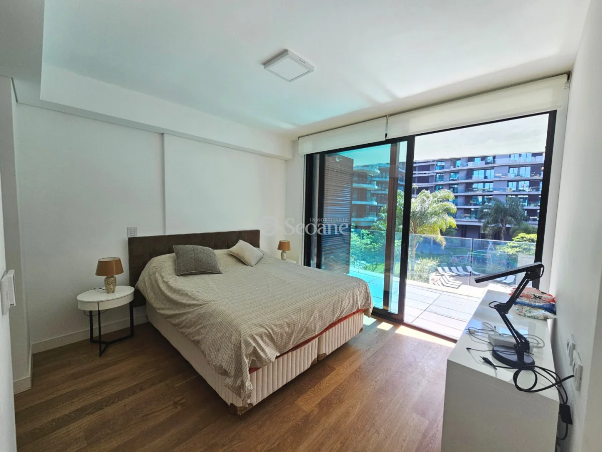 La unidad tiene pisos de madera, cortinas roller automatizadas en todo el apartamento, vídeo portero, ventanas con aislante térmico, agua caliente y calefacción losa a gas y aire acondicionado regulable por ambiente.