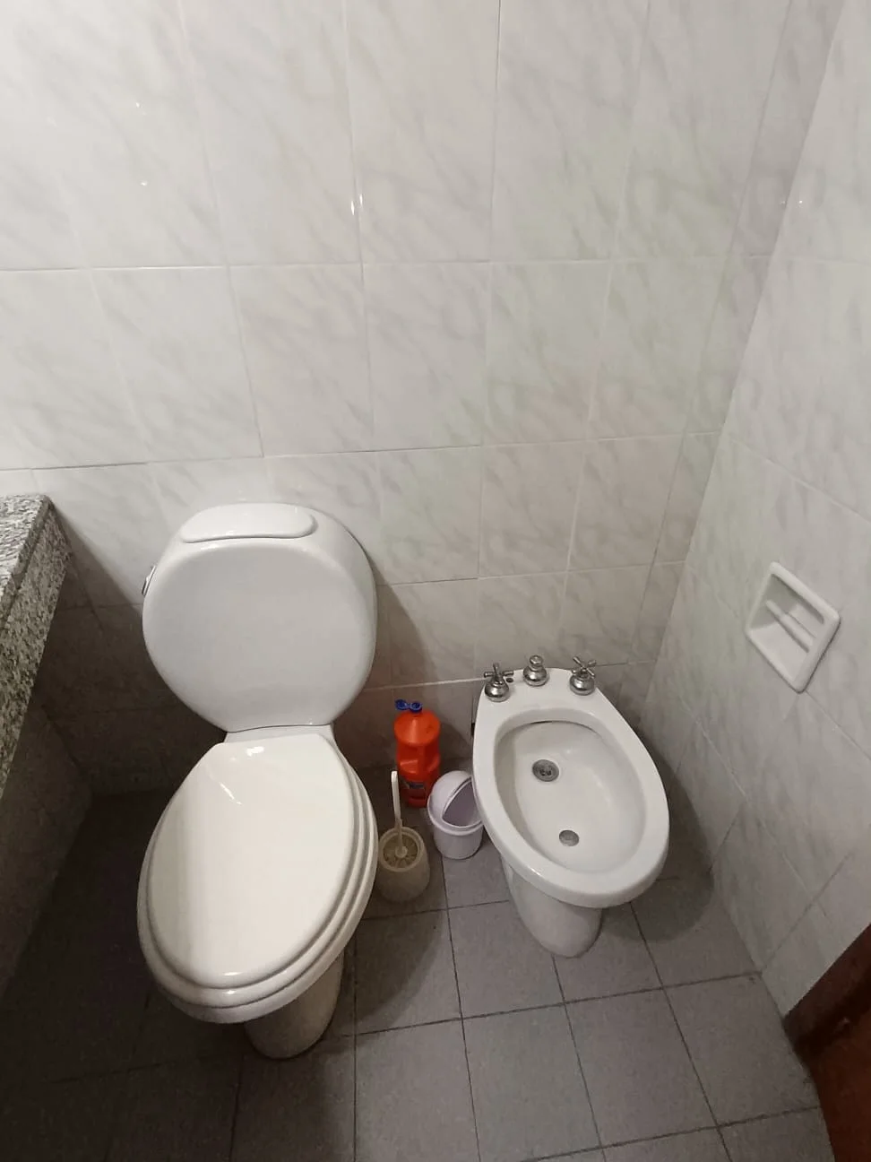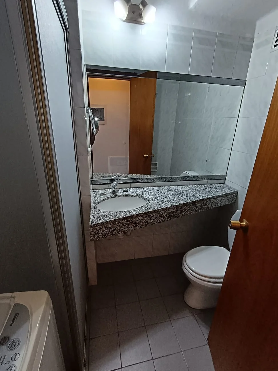 El baño es completo y tiene conexiones para lavarropa. El lavarropa que está instalado, puede quedar.