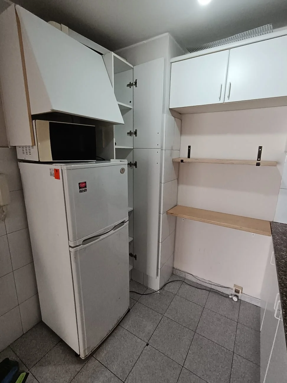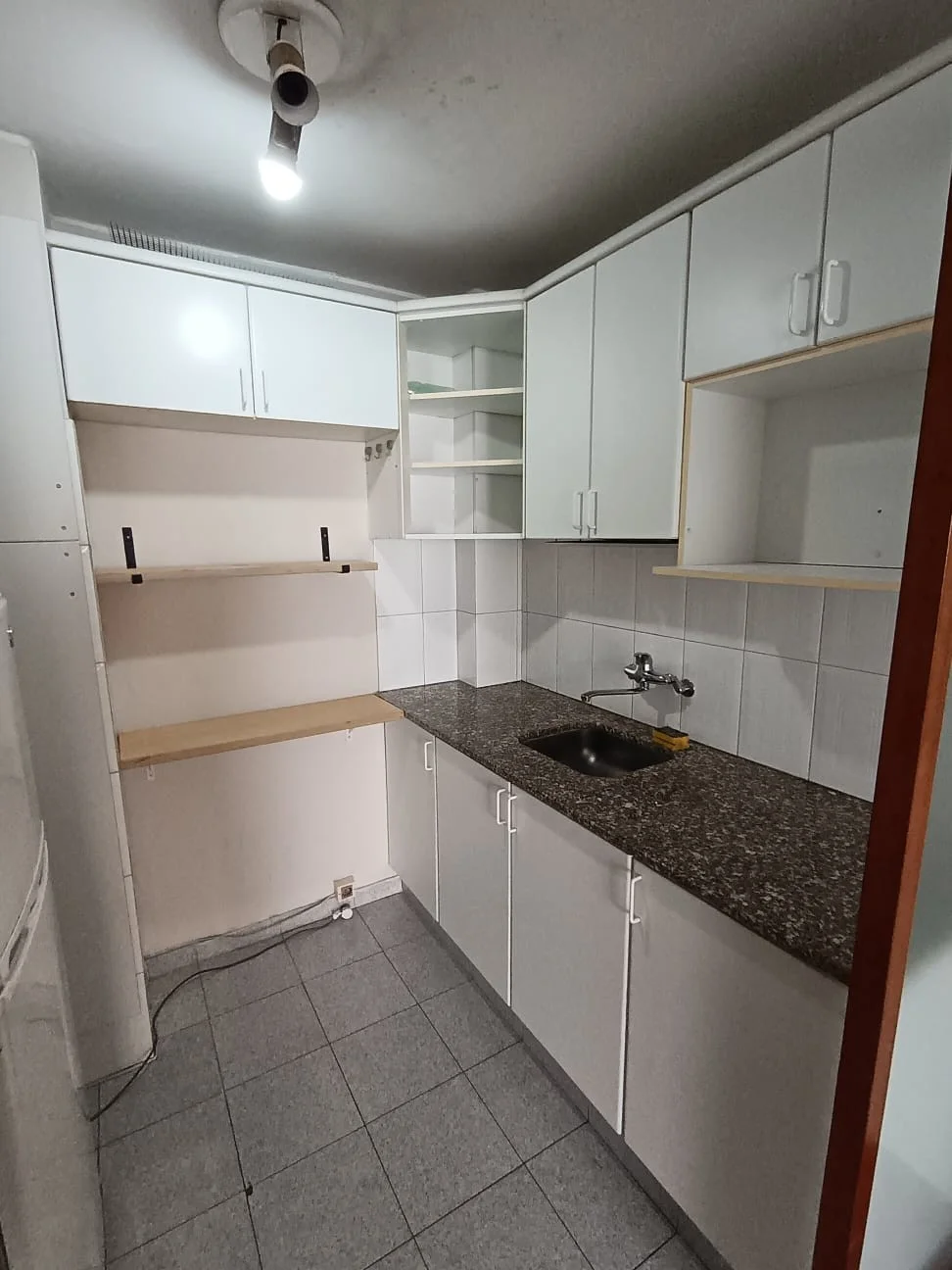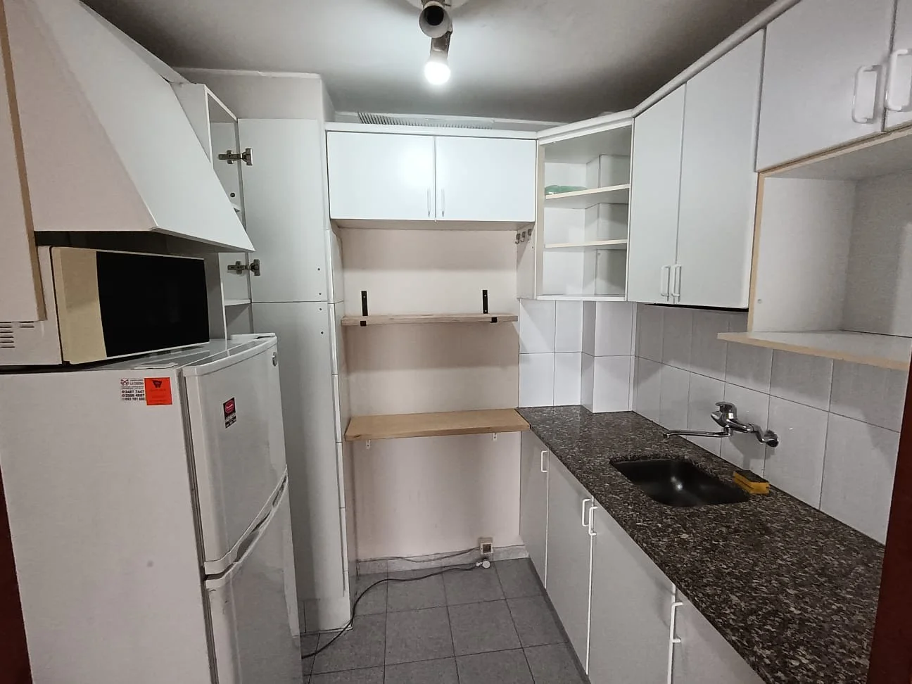 La cocina está equipada con muebles aéreos y bajo mesada, así como extracción de humos y conexión para gas por cañería.