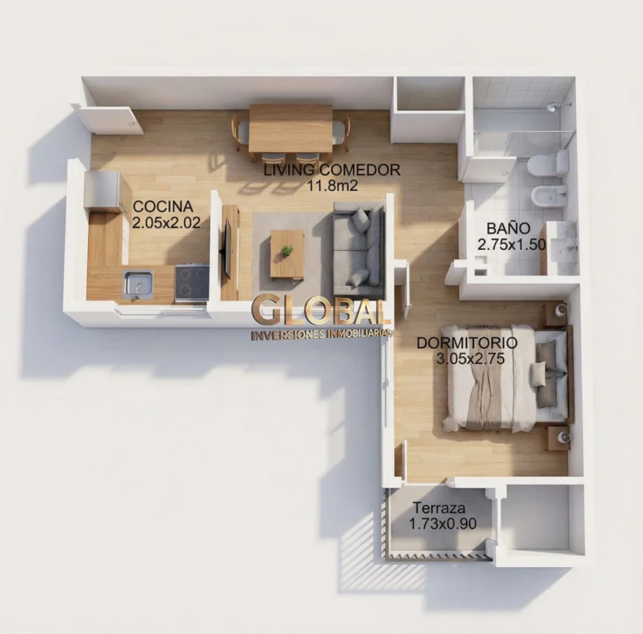 La unidad cuenta con ambientes bien distribuidos, buena iluminación natural y un diseño eficiente, orientado a maximizar el confort y la practicidad. Su tipología es altamente demandada por estudiantes y jóvenes profesionales, lo que asegura rápida colocación en alquiler y baja vacancia.