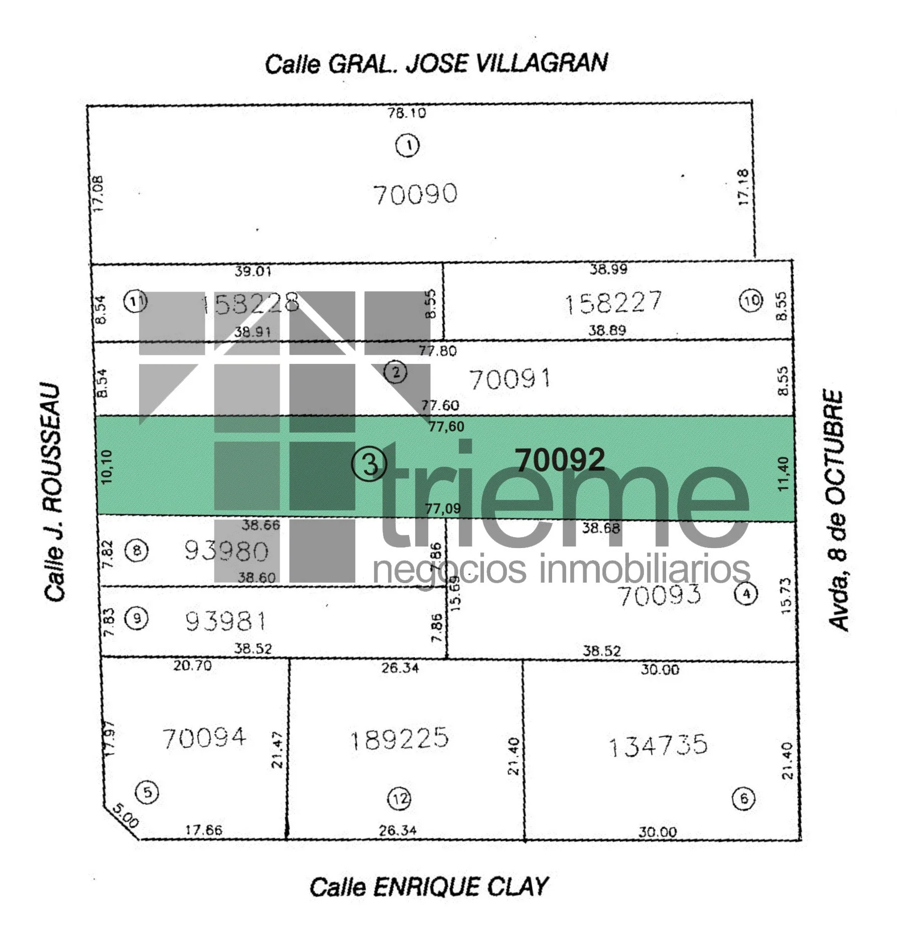 11,40mts de Frente en 8 de Octubre y 10,10mts en Juan Jacobo Rousseau.