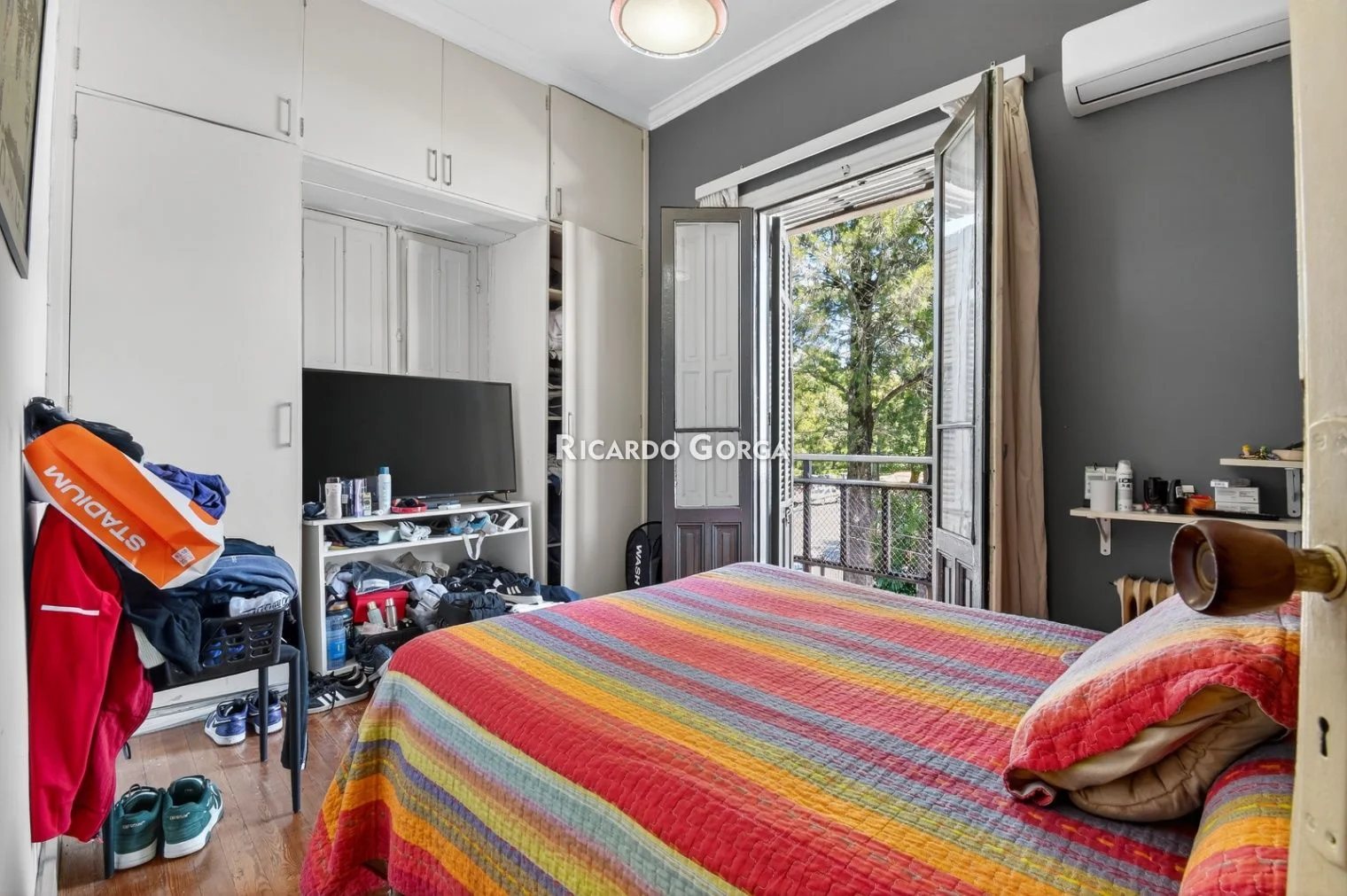 Principal con piso parquet, placard pared a pared y salida a balcón