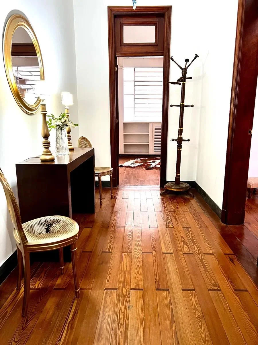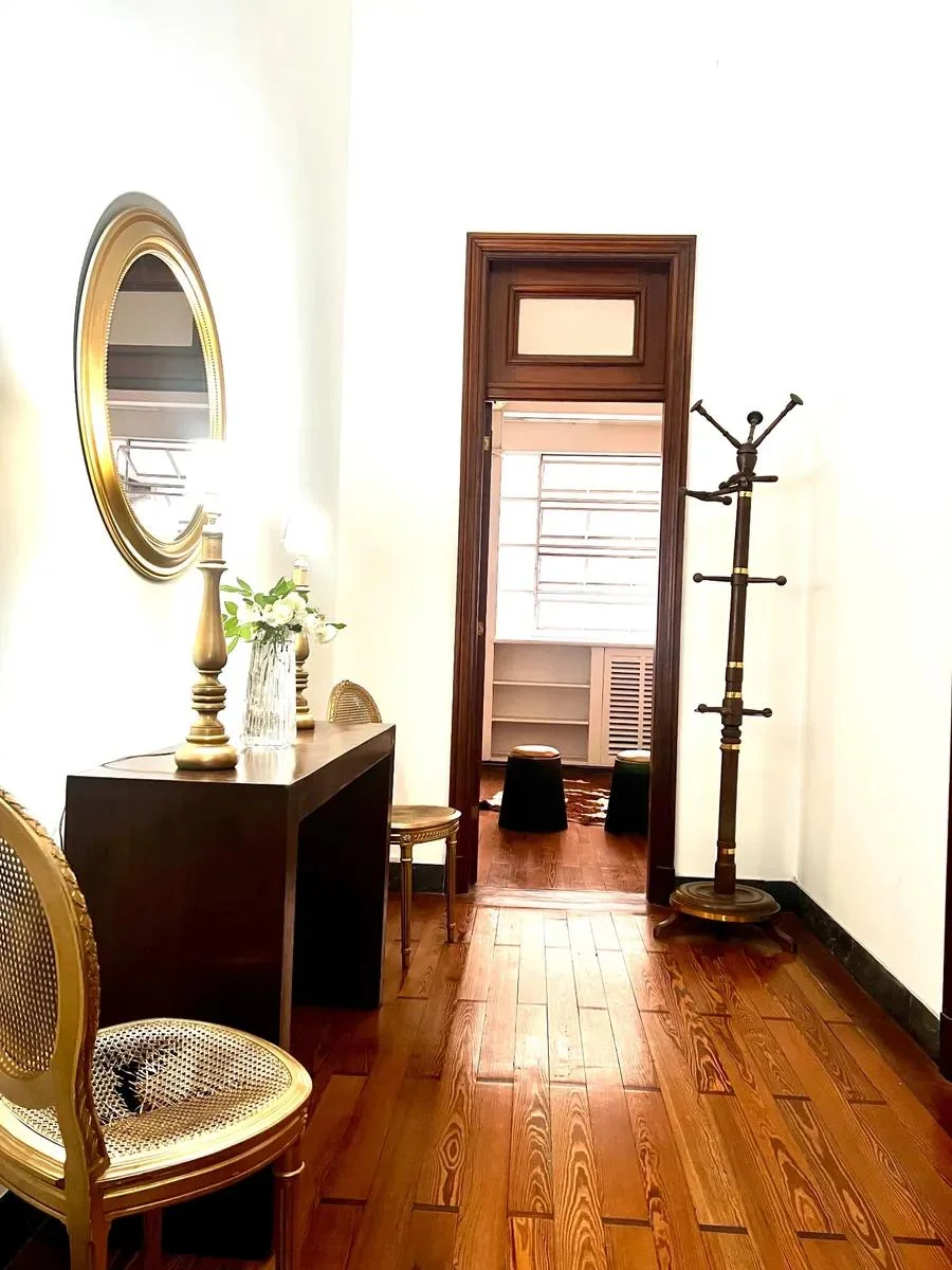 La unidad, de 75 m², se encuentra totalmente amueblada y equipada con muebles de calidad. Cada detalle fue cuidadosamente elegido para combinar elegancia y confort, respetando el estilo original del edificio.