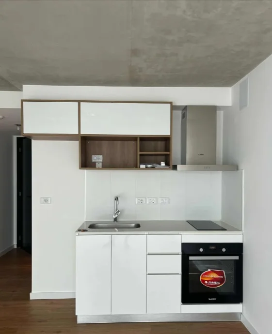 Cocina integrada con anafe eléctrico, campana y horno empotrado