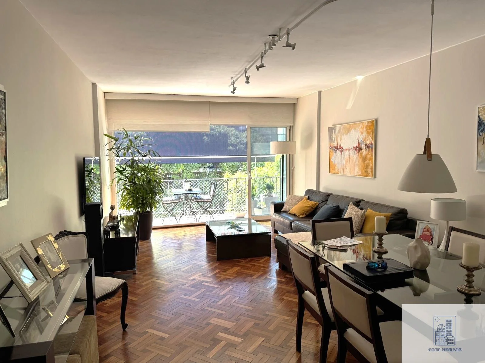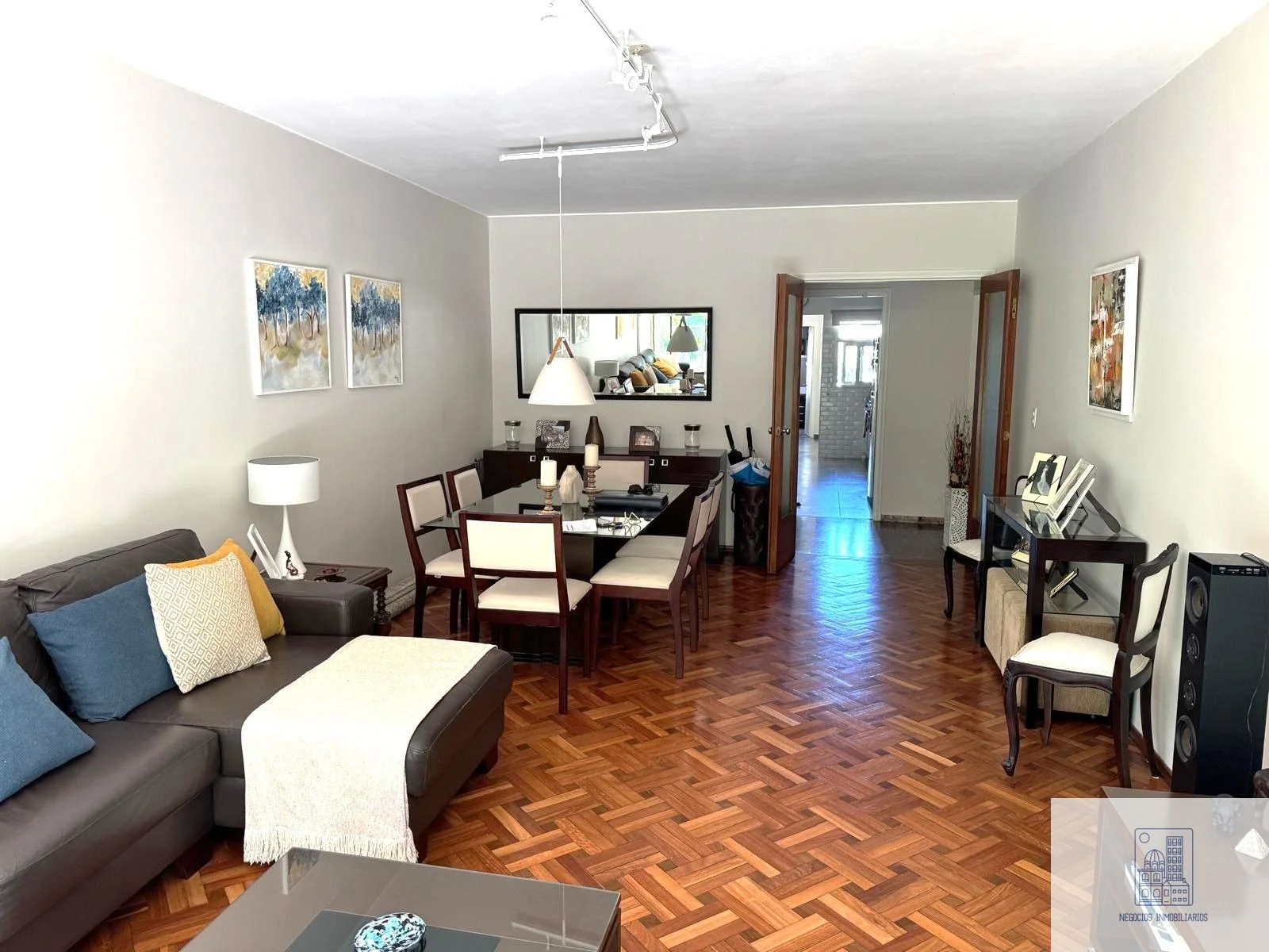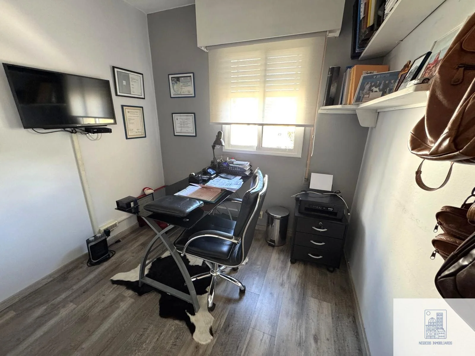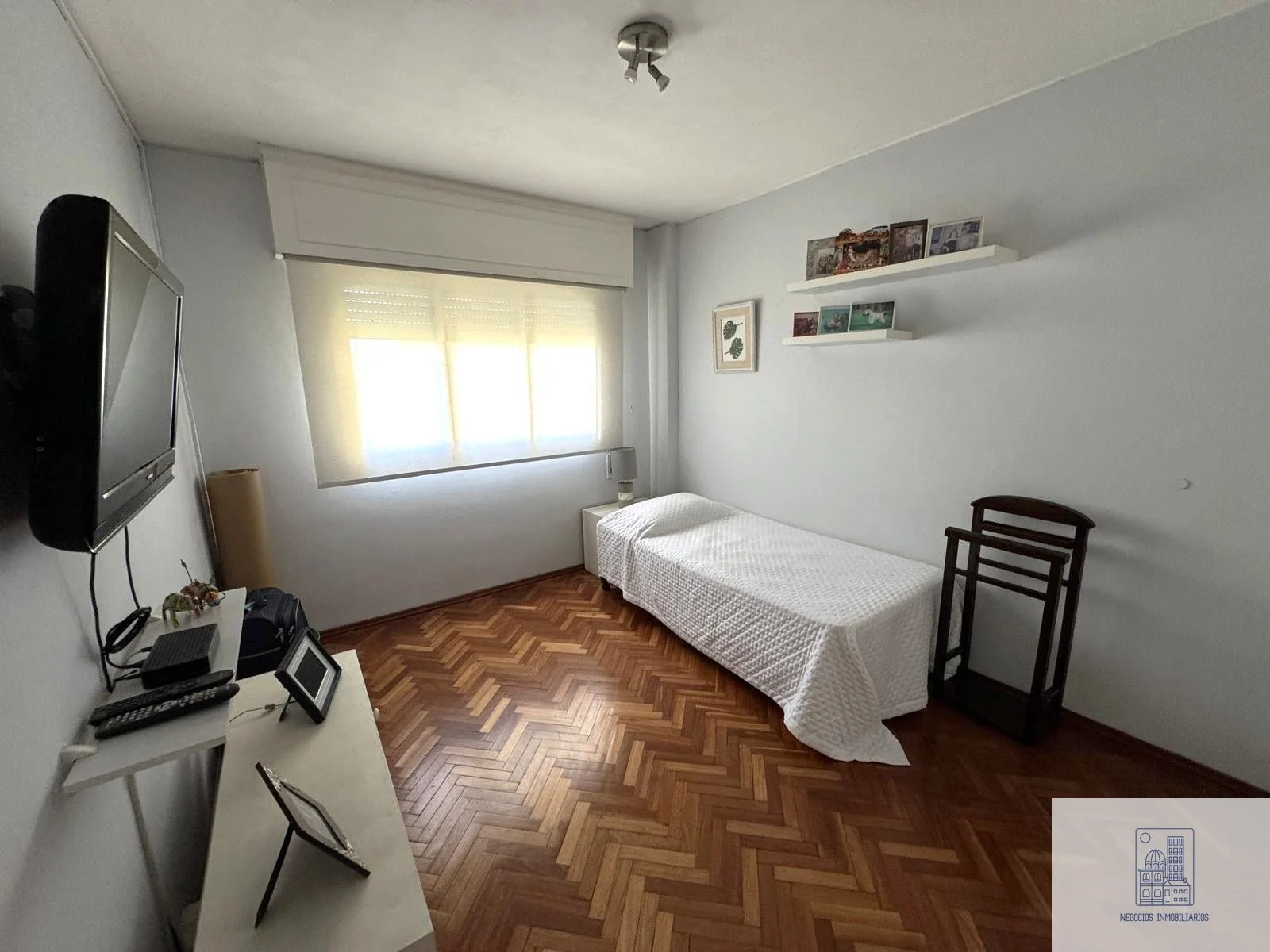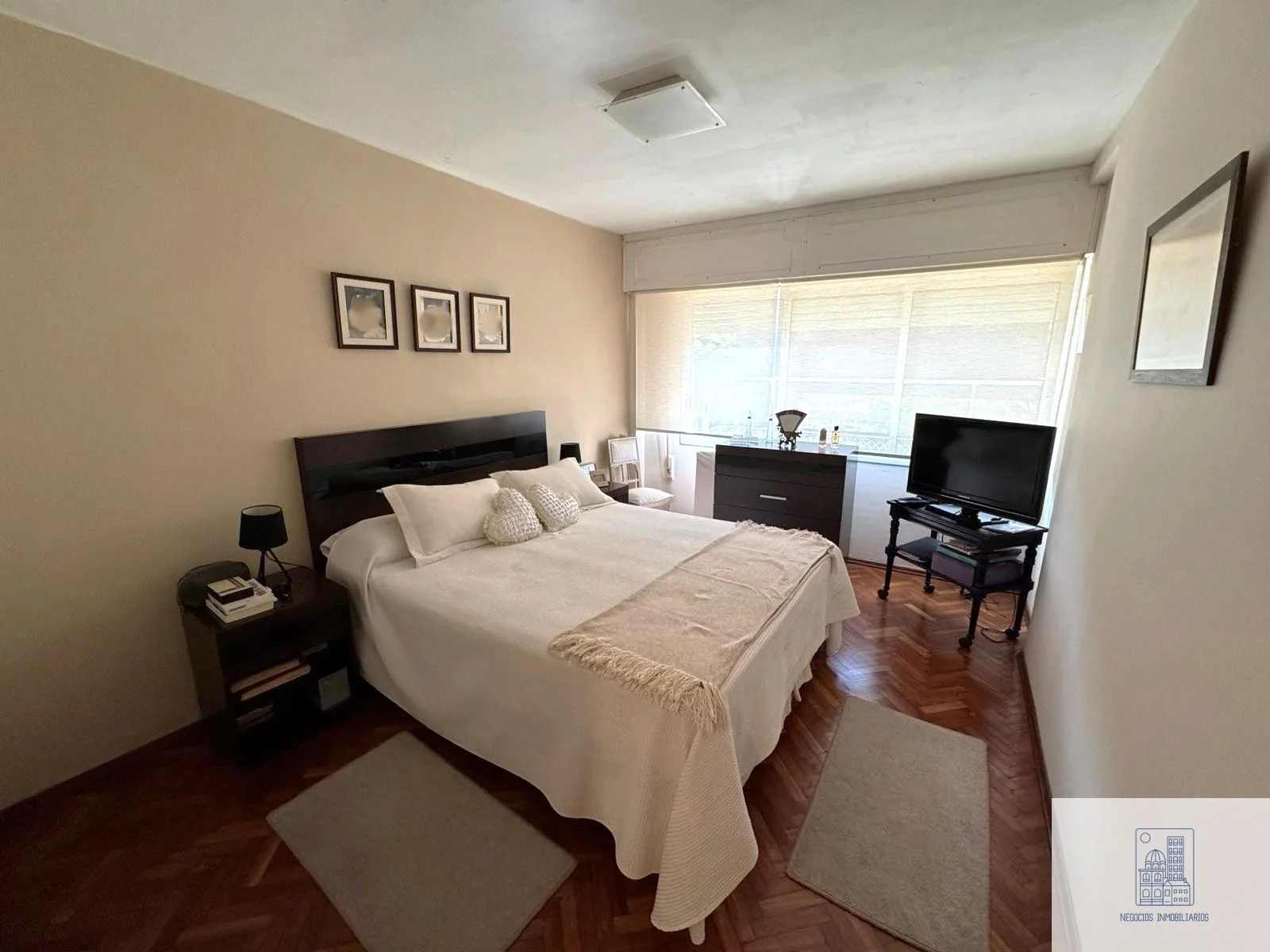 2 dormitorios de cómodas dimensiones la principal en suite, todos con placares, 3er habitación actualmente de escritorio, pasillo de distribución, entrada principal y de servicio, cocina con comedor diario, mesada de granito , profusión de placares en alto y bajo mesada, alacena, 3 baños, garage para 1 auto, calefacción central, gas por cañería, dos turnos de portería.