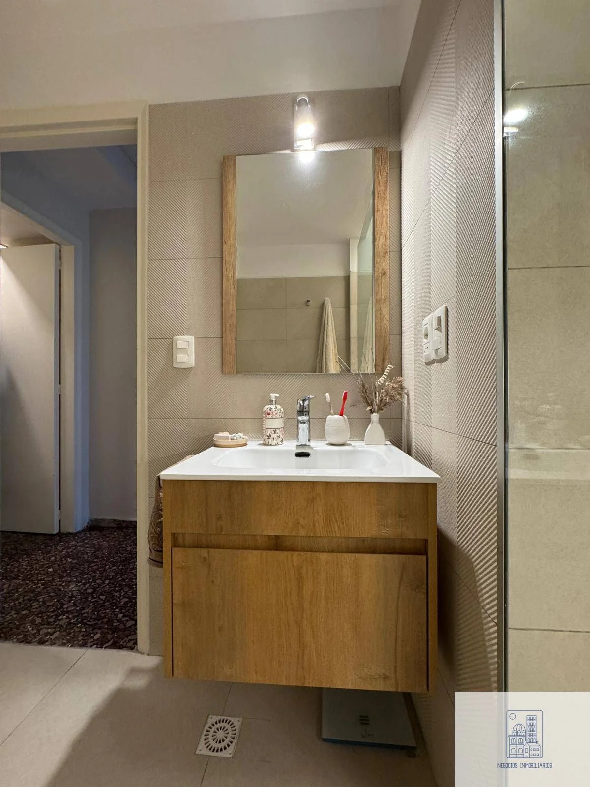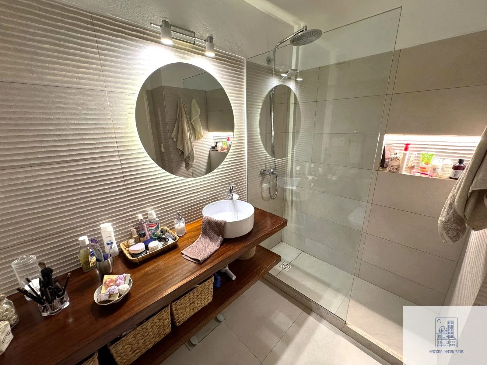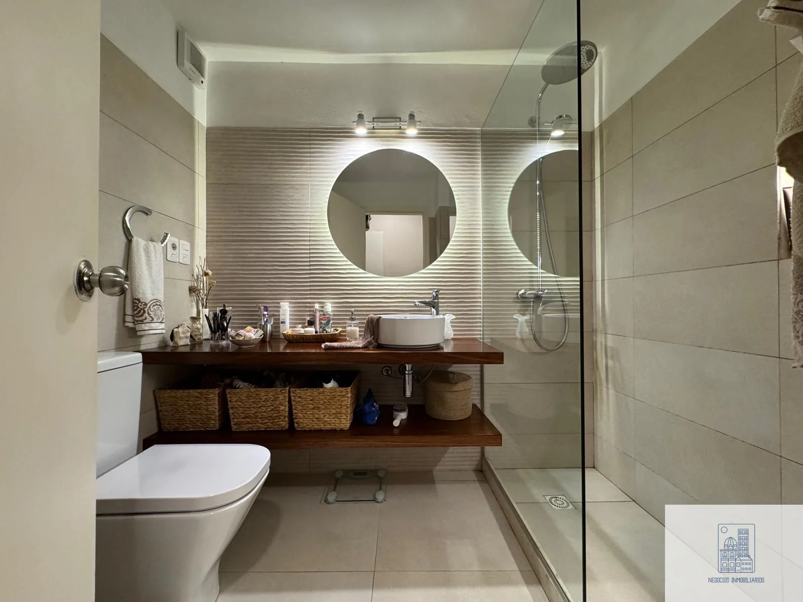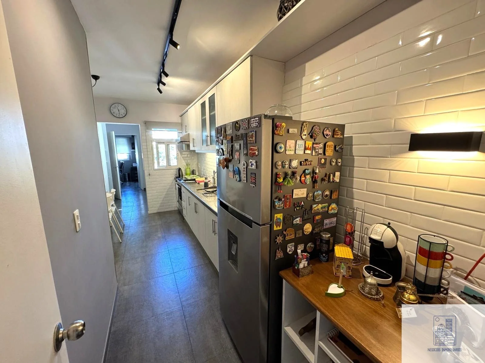 2 dormitorios de cómodas dimensiones la principal en suite, todos con placares, 3er habitación actualmente de escritorio, pasillo de distribución, entrada principal y de servicio, cocina con comedor diario, mesada de granito , profusión de placares en alto y bajo mesada, alacena, 3 baños, garage para 1 auto, calefacción central, gas por cañería, dos turnos de portería.