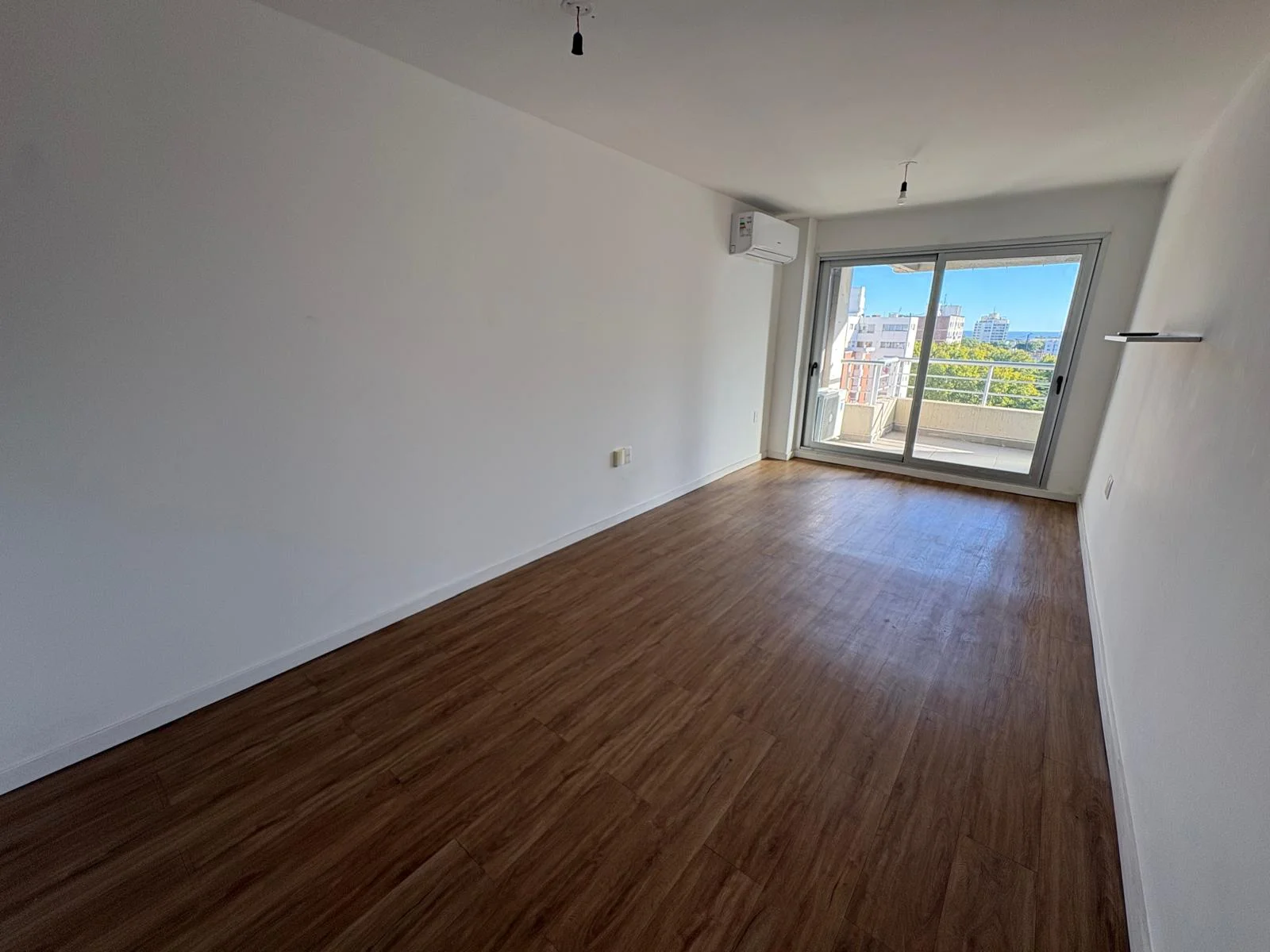Amplio y luminoso living comedor equipado con AACC, con salida a terraza de 5mts2 al frente