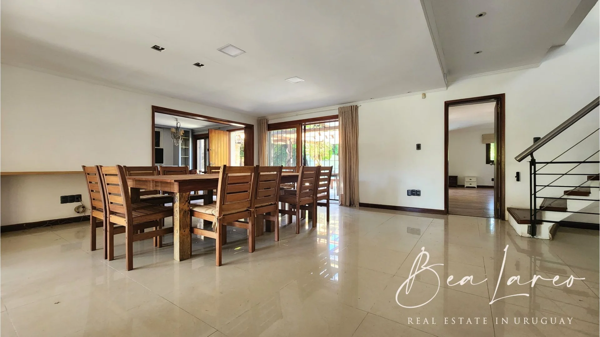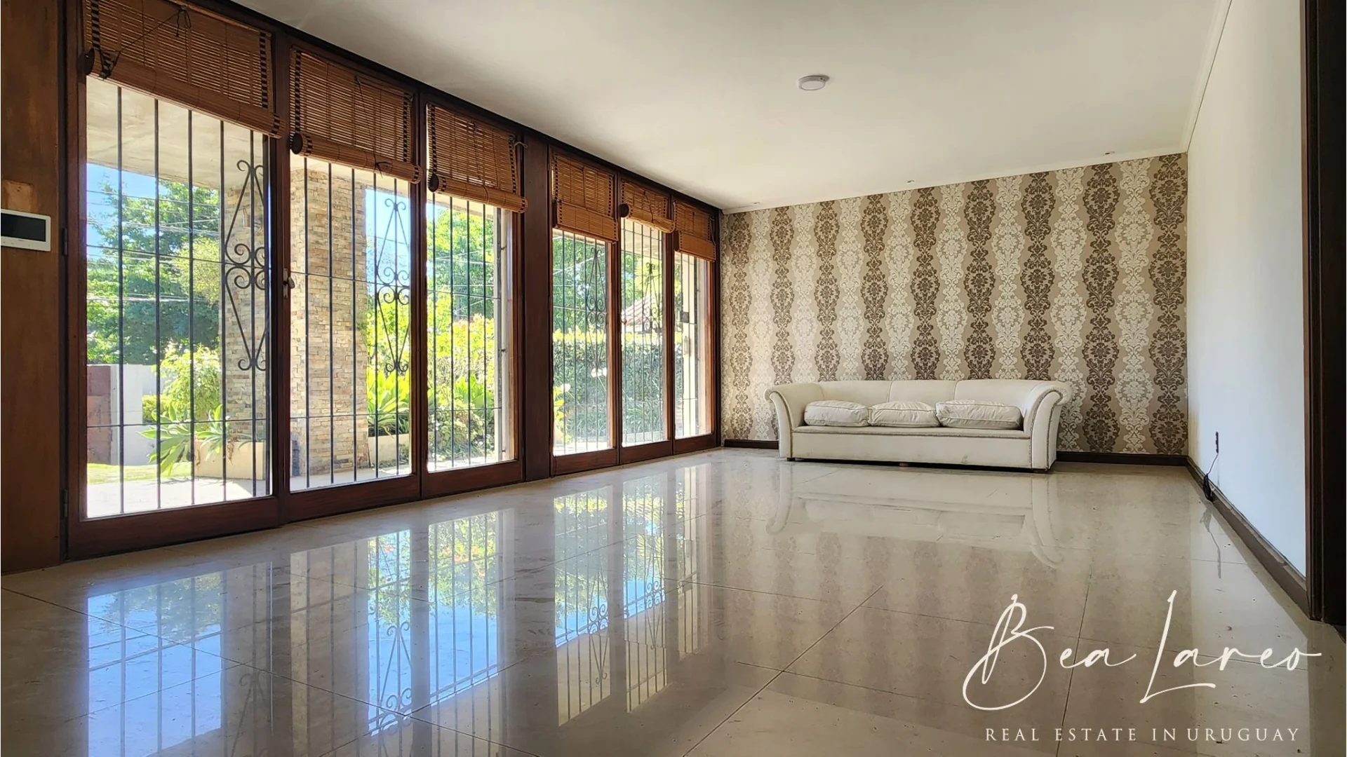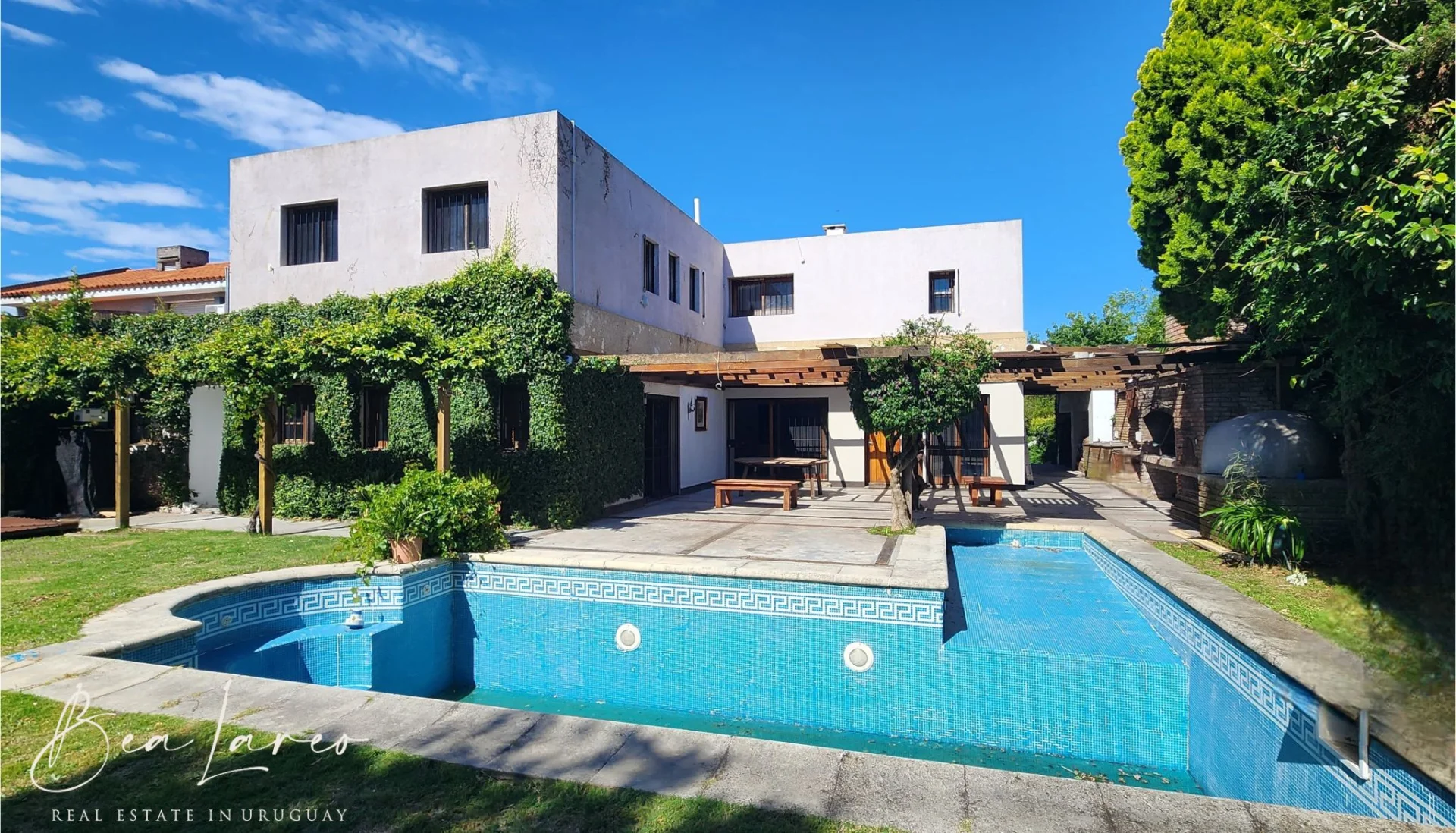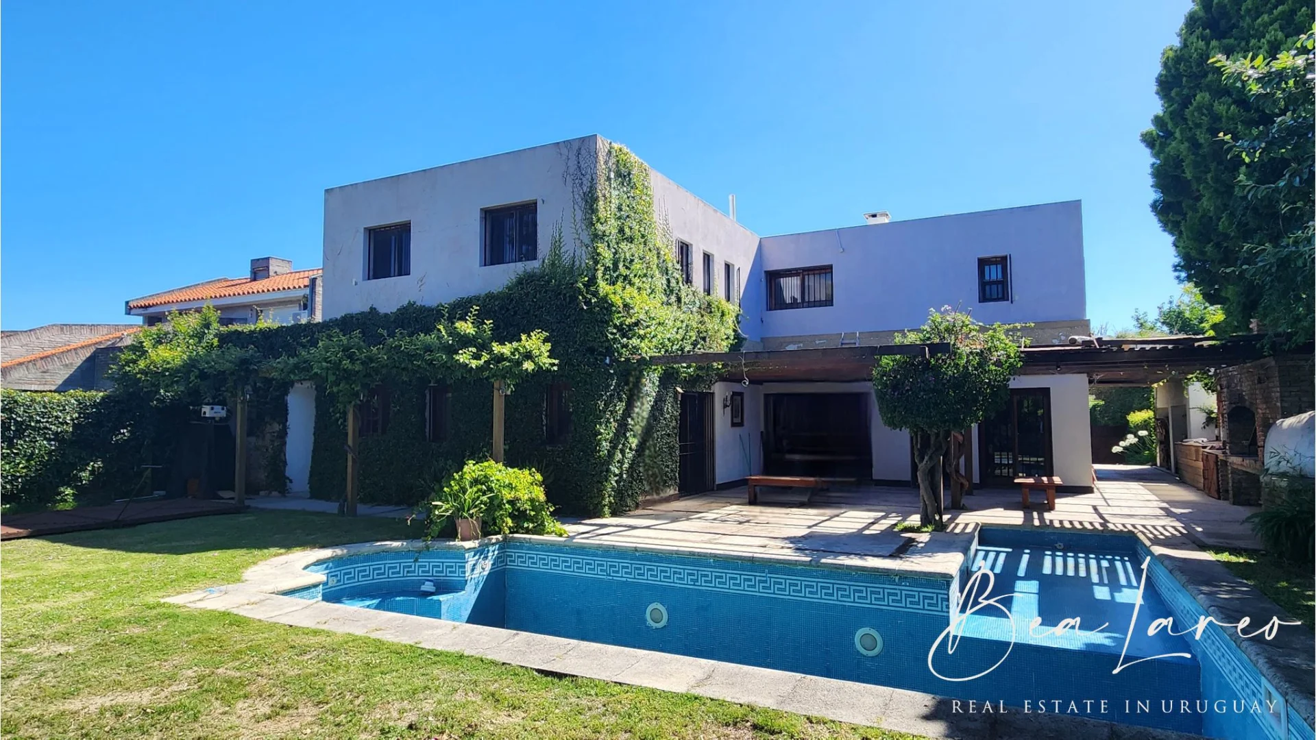Spacious 2-story house with a very good location in Carrasco, available for both sale and rent. It features 500 sqm of built space on a plot of nearly 900 sqm. Renovated and expanded in 2012, it is characterized by its generous rooms and natural light, making it suitable for both family use and office space. On the ground floor, it offers a reception area, spacious living and dining rooms connected to the front garden, large family room that opens to a sizeable pergola-covered terrace with a BBQ and bread oven, overlooking the backyard garden. The semi-integrated kitchen includes a daily dining area. Large en-suite bedroom and spacious study or playroom with a bathroom. Exterior service area that includes maids quarters and a laundry room. On the upper floor, the house features an intimate family room with a wood-burning stove, 3 spacious in-suite bedrooms, and an enjoyable 50 sqm terrace with a pergola and deck. Gas underfloor heating and central hot water. Additional air conditioning. Sunny, enjoyable garden with a pool. The house includes an underground wine cellar with a climate control system. Covered parking space for 2 cars plus additional parking space. High standard security, including interior and exterior alarm system, security bars on windows, and night guard service.