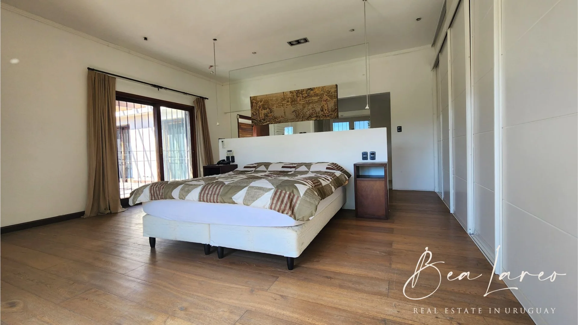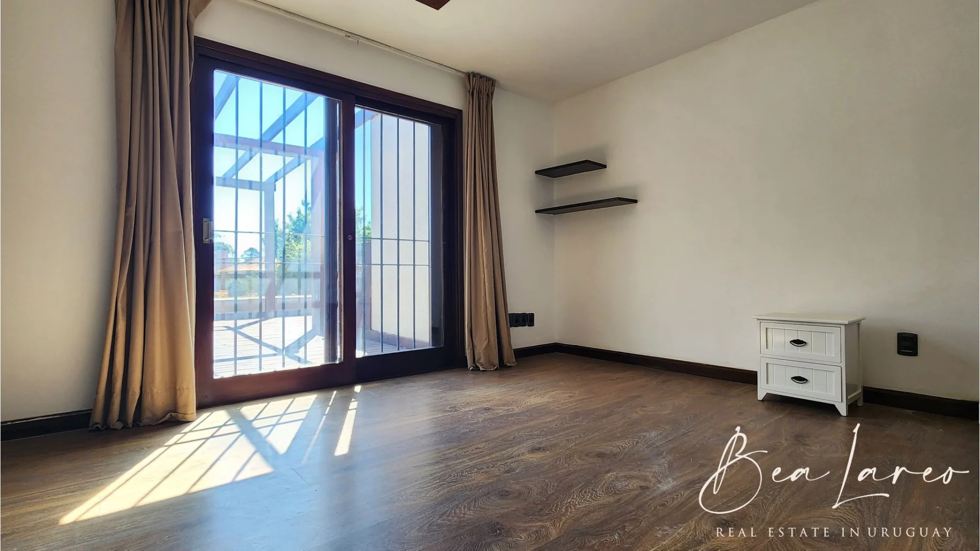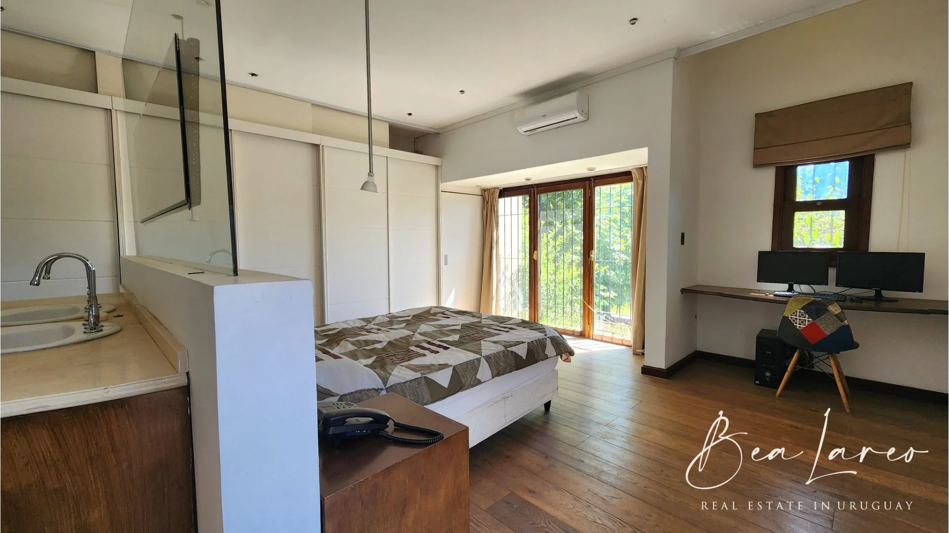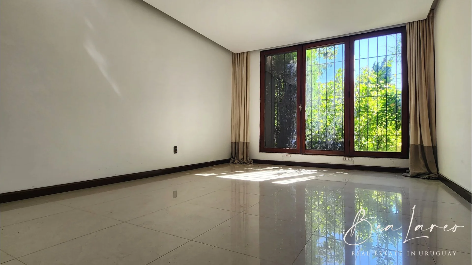 Spacious 2-story house with a very good location in Carrasco, available for both sale and rent. It features 500 sqm of built space on a plot of nearly 900 sqm. Renovated and expanded in 2012, it is characterized by its generous rooms and natural light, making it suitable for both family use and office space. On the ground floor, it offers a reception area, spacious living and dining rooms connected to the front garden, large family room that opens to a sizeable pergola-covered terrace with a BBQ and bread oven, overlooking the backyard garden. The semi-integrated kitchen includes a daily dining area. Large en-suite bedroom and spacious study or playroom with a bathroom. Exterior service area that includes maids quarters and a laundry room. On the upper floor, the house features an intimate family room with a wood-burning stove, 3 spacious in-suite bedrooms, and an enjoyable 50 sqm terrace with a pergola and deck. Gas underfloor heating and central hot water. Additional air conditioning. Sunny, enjoyable garden with a pool. The house includes an underground wine cellar with a climate control system. Covered parking space for 2 cars plus additional parking space. High standard security, including interior and exterior alarm system, security bars on windows, and night guard service.
