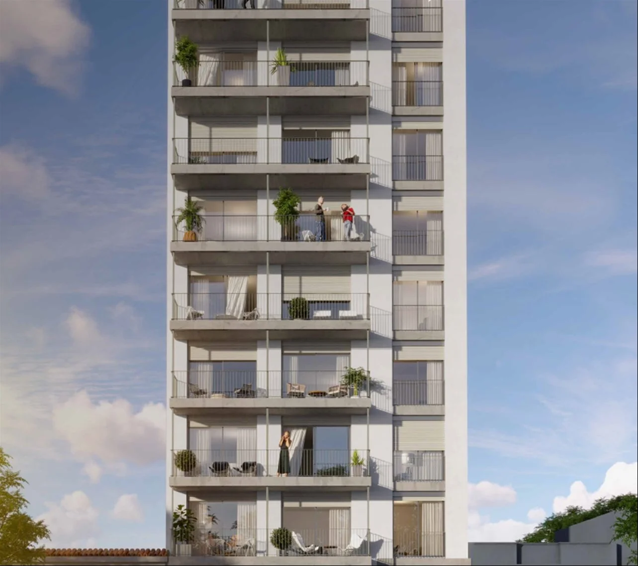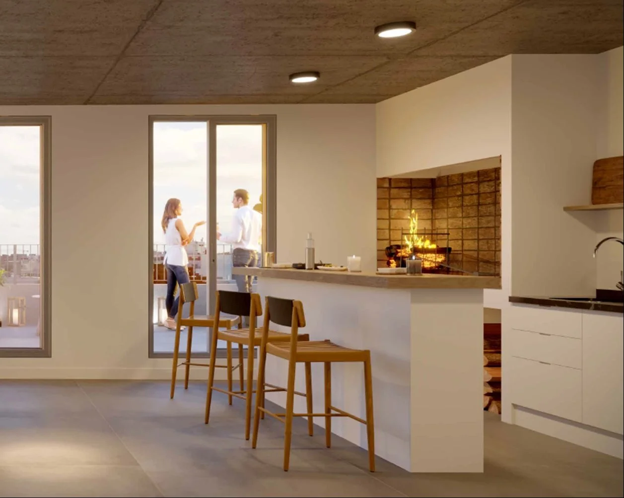 Características del proyecto •Carpintería y mesada en granito •Conexión con previsión para aire acondicionado •Placares instalados •Persianas en todas las ventanas •Cortinas de enrollar en todos los ambientes •Construccion tradicional con terminaciones de calidad: hormigón visto, aluminio natural y cristal •Salón de SUM y parrillero •2 ascensores
