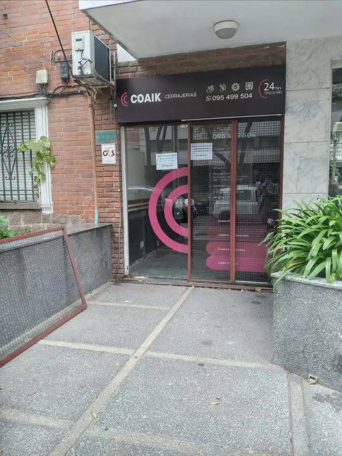 Local comercial en Pocitos, Pagola y Berro. Salón comercial de 20m2, frente con blindex y reja. 1 baño.